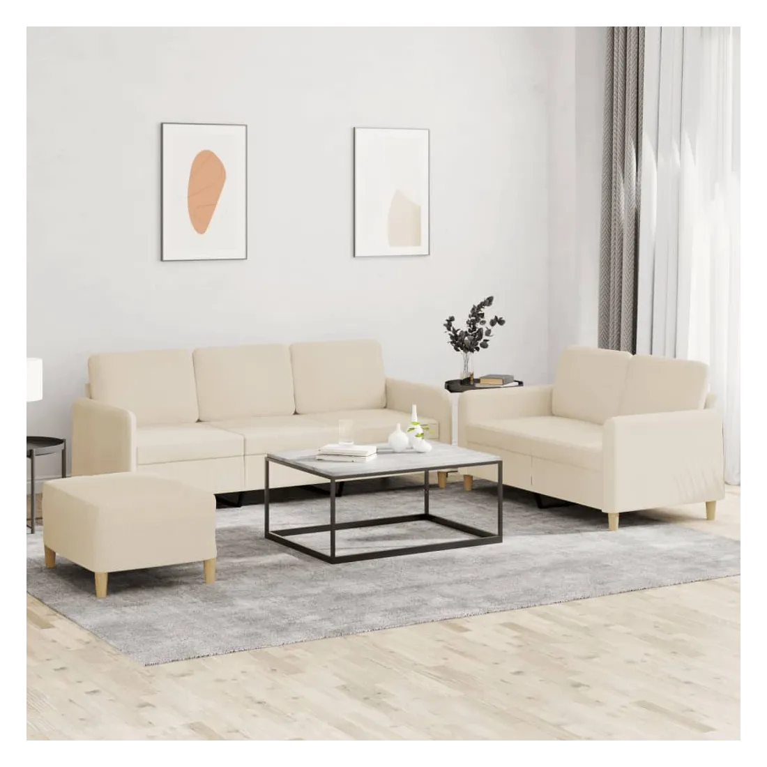 Cet ensemble de canapés est un excellent endroit pour discuter, lire, regarder la télévision ou simplement vous détendre. Il est destiné à être un point central de votre maison. Tissu durable : le tissu présente un aspect simple et épuré tout en restant respirant et durable.Structure robuste et stable : la structure en contreplaqué et en métal du canapé assure robustesse et stabilité.Expérience d'assise confortable : le canapé est très confortable avec le siège, les accoudoirs et les coussins de dossier bien rembourrés.Pouf polyvalent : ce repose-pied convient pour reposer vos pieds lorsque vous êtes allongé dans un canapé ou pour vous offrir un siège supplémentaire dans votre pièce. De plus, le design simple et la taille compacte le rendent idéal pour presque tous vos espaces de vie.