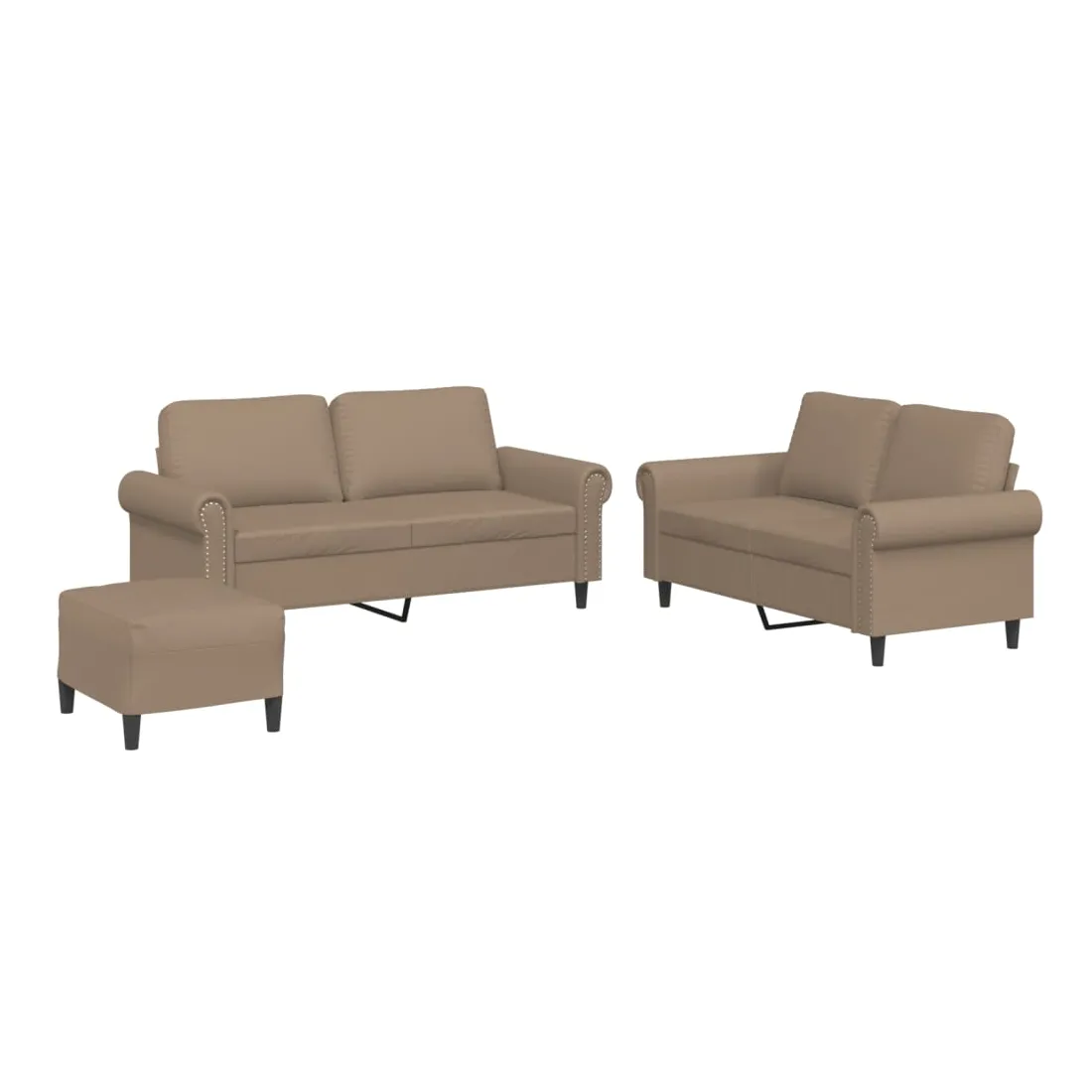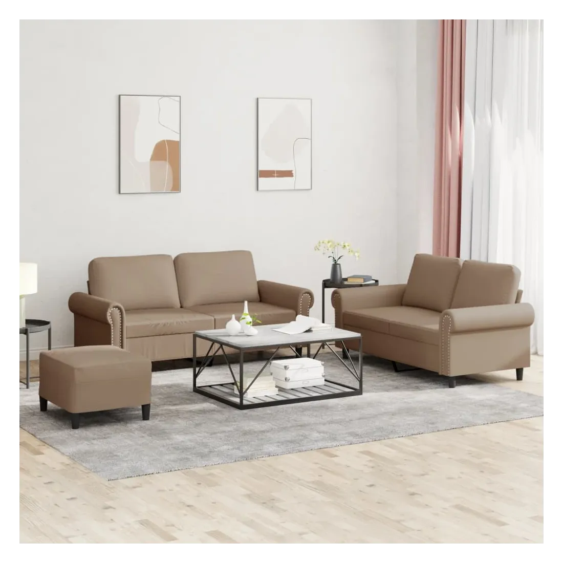 Cet ensemble de canapés est un excellent endroit pour discuter, lire, regarder la télévision ou simplement vous détendre. Il est destiné à être un point central de votre maison. Similicuir durable : le similicuir est un matériau très durable. Il est résistant aux taches, ce qui le rend facile à nettoyer avec un chiffon humide. La surface lisse donne également un aspect luxueux et la beauté du cuir véritable.Structure robuste et stable : la structure en contreplaqué et en métal du canapé assure robustesse et stabilité.Expérience d'assise confortable : le canapé est très confortable avec le siège, les accoudoirs et les oreillers de dossier bien rembourrés.Pouf polyvalent : ce repose-pied convient pour reposer vos pieds lorsque vous êtes allongé dans un canapé ou pour vous offrir un siège supplémentaire dans votre pièce. De plus, le design simple et la taille compacte le rendent idéal pour presque tous vos espaces de vie.