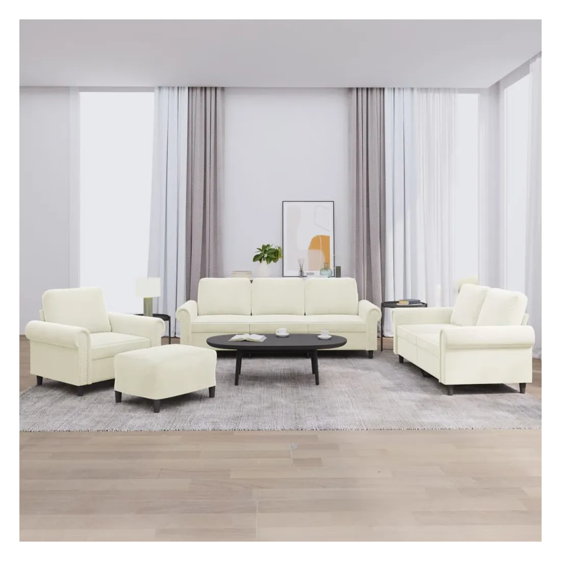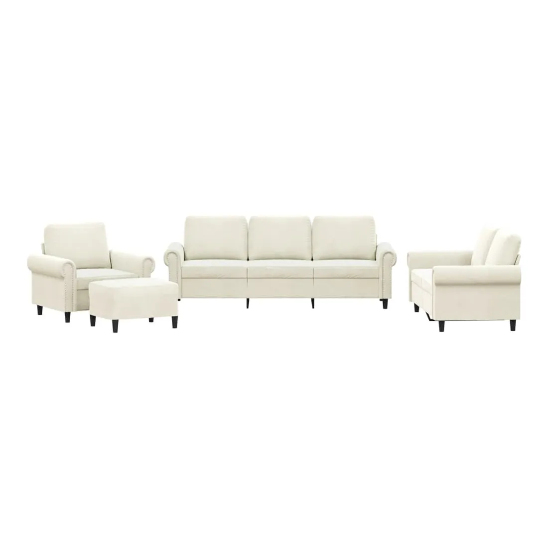 Cet ensemble de canapés est un excellent endroit pour discuter, lire, regarder la télévision ou simplement vous détendre. Il est destiné à être un point central de votre maison. Velours doux : le velours est un tissu doux et confortable, agréable au toucher.Structure robuste et stable : la structure en contreplaqué et en métal du canapé assure robustesse et stabilité.Expérience d'assise confortable : le canapé est très confortable avec le siège, les accoudoirs et les oreillers de dossier bien rembourrés.Pouf polyvalent : ce repose-pied convient pour reposer vos pieds lorsque vous êtes allongé dans un canapé ou pour vous offrir un siège supplémentaire dans votre pièce. De plus, le design simple et la taille compacte le rendent idéal pour presque tous vos espaces de vie.