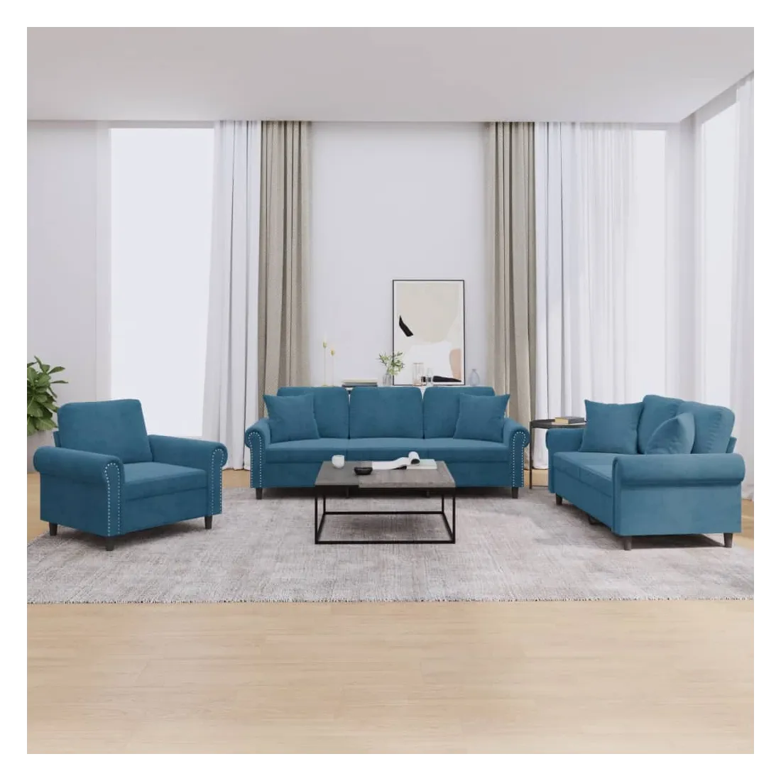Ensemble de canapés 3 pcs avec coussins bleu velours
