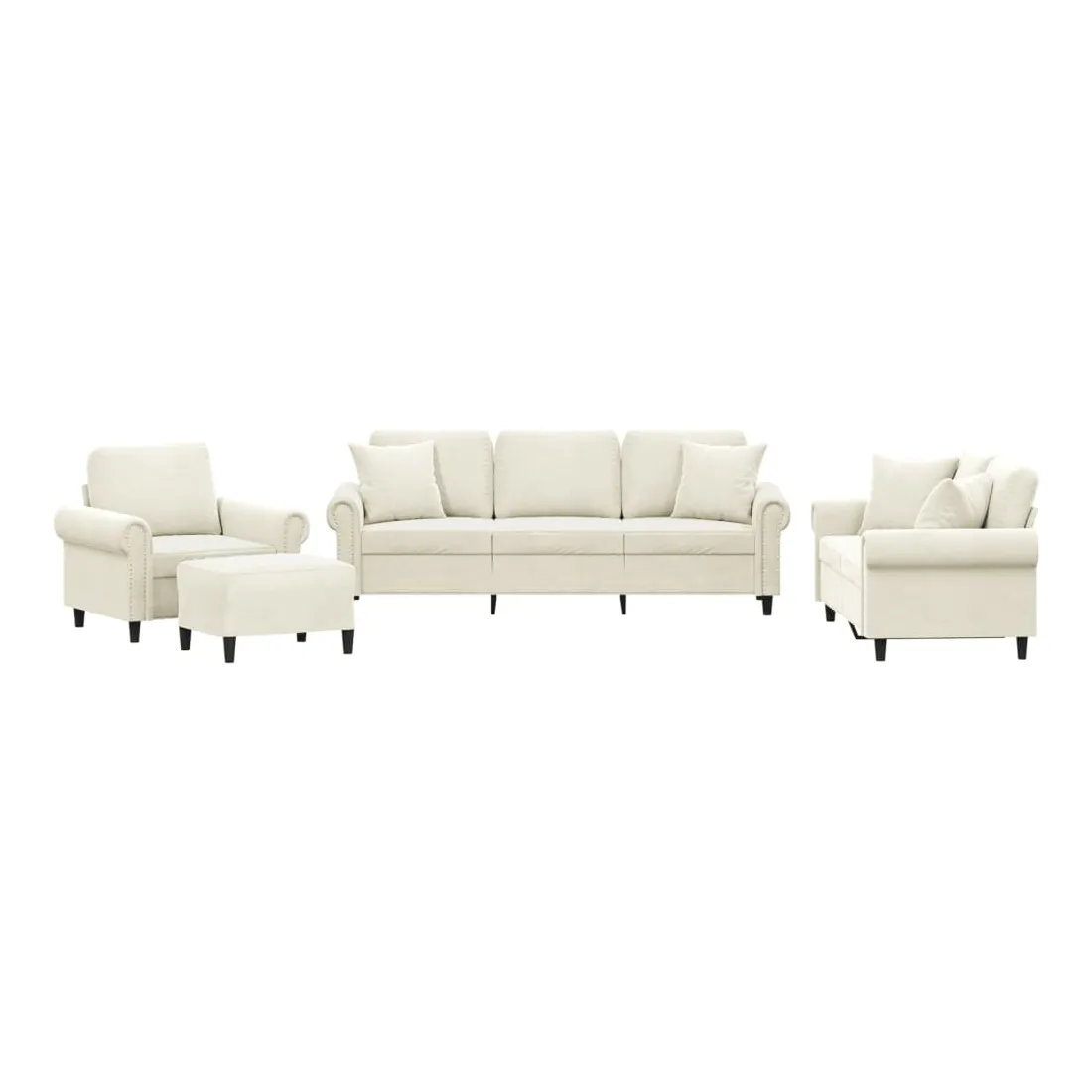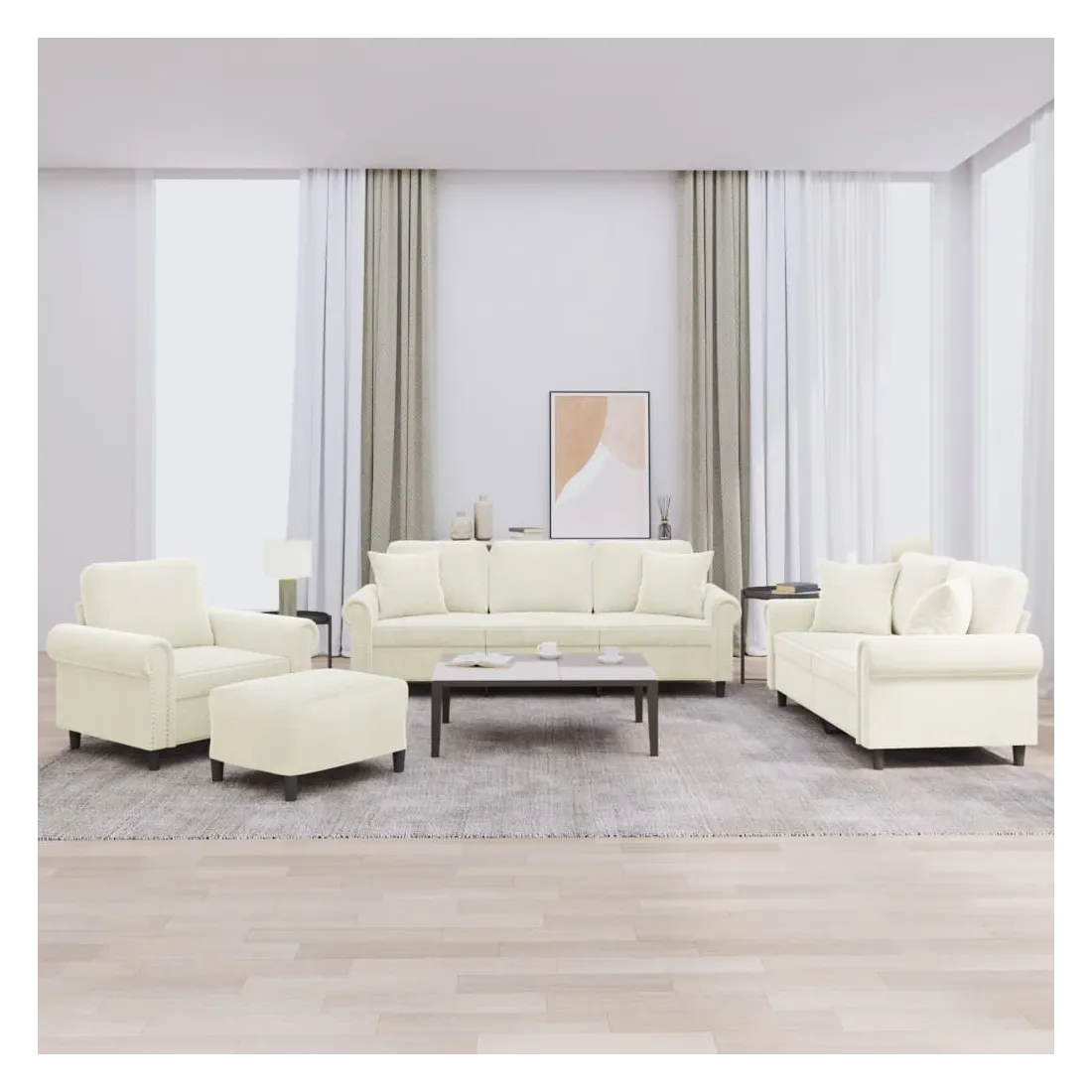 Cet ensemble de canapés est un excellent endroit pour discuter, lire, regarder la télévision ou simplement vous détendre. Il est destiné à être un point central de votre maison. Velours doux : le velours est un tissu doux et confortable, agréable au toucher.Structure robuste et stable : la structure en contreplaqué et en métal du canapé assure robustesse et stabilité.Expérience d'assise confortable : le canapé est très confortable avec le siège, les accoudoirs et les oreillers de dossier bien rembourrés.Oreillers de canapé pratiques : ces oreillers décoratifs carrés non seulement embellissent votre décor mais ils peuvent également apporter un confort supplémentaire lorsque vous êtes assis ou allongé.Pouf polyvalent : ce repose-pied convient pour reposer vos pieds lorsque vous êtes allongé dans un canapé ou pour vous offrir un siège supplémentaire dans votre pièce. De plus, le design simple et la taille compacte le rendent idéal pour presque tous vos espaces de vie.