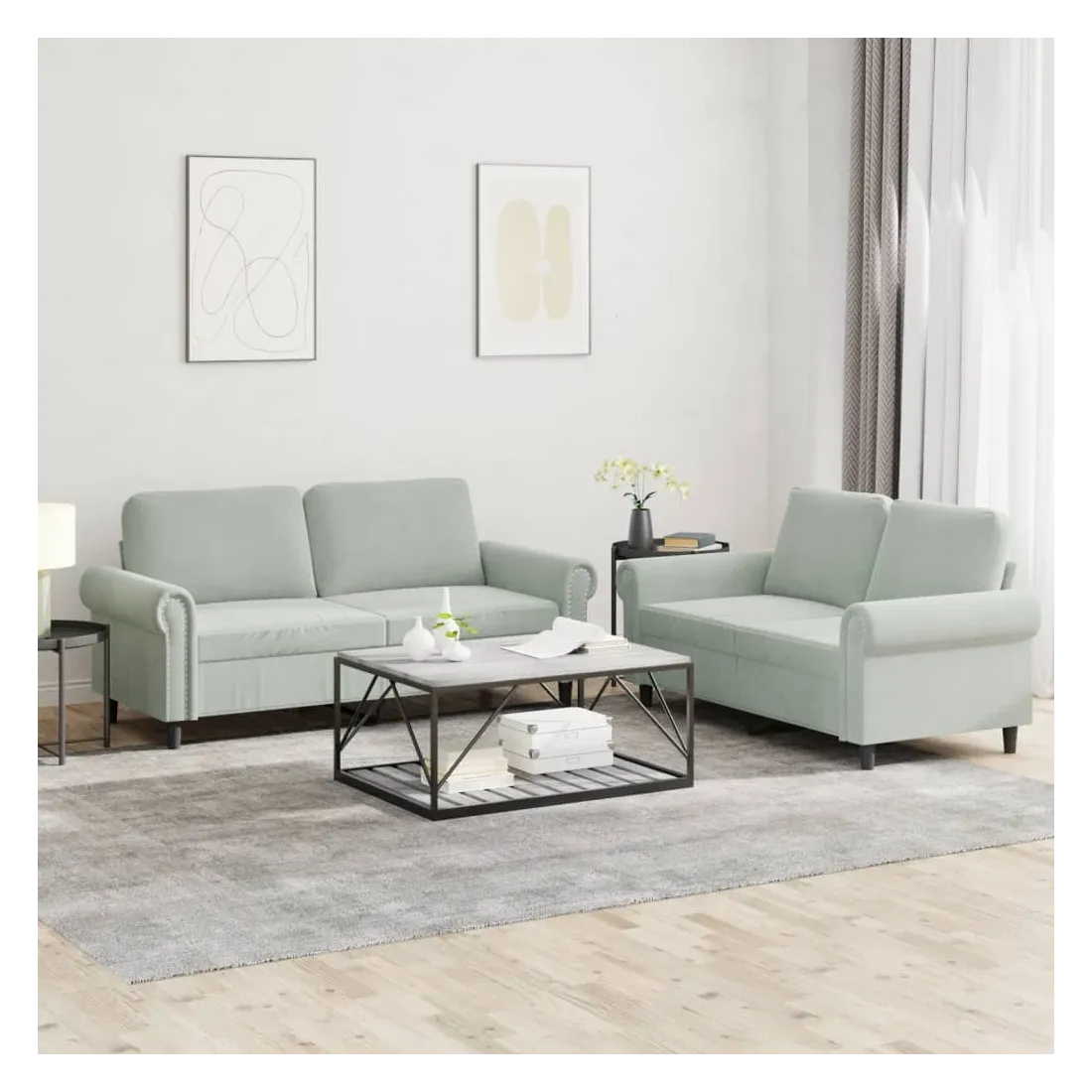 Cet ensemble de canapés est un excellent endroit pour discuter, lire, regarder la télévision ou simplement vous détendre. Il est destiné à être un point central de votre maison. Velours doux : le velours est un tissu doux et confortable, agréable au toucher. Structure robuste et stable : la structure en contreplaqué et en métal du canapé assure robustesse et stabilité. Expérience d'assise confortable : le canapé est très confortable avec le siège, les accoudoirs et les oreillers de dossier bien rembourrés.