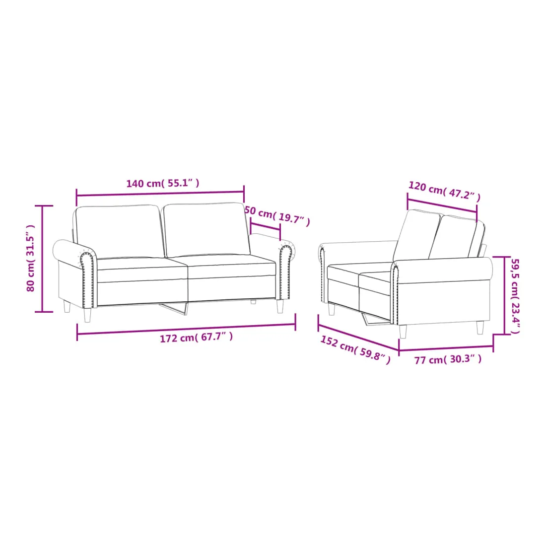 - Canapé à 2 places (140 cm) :