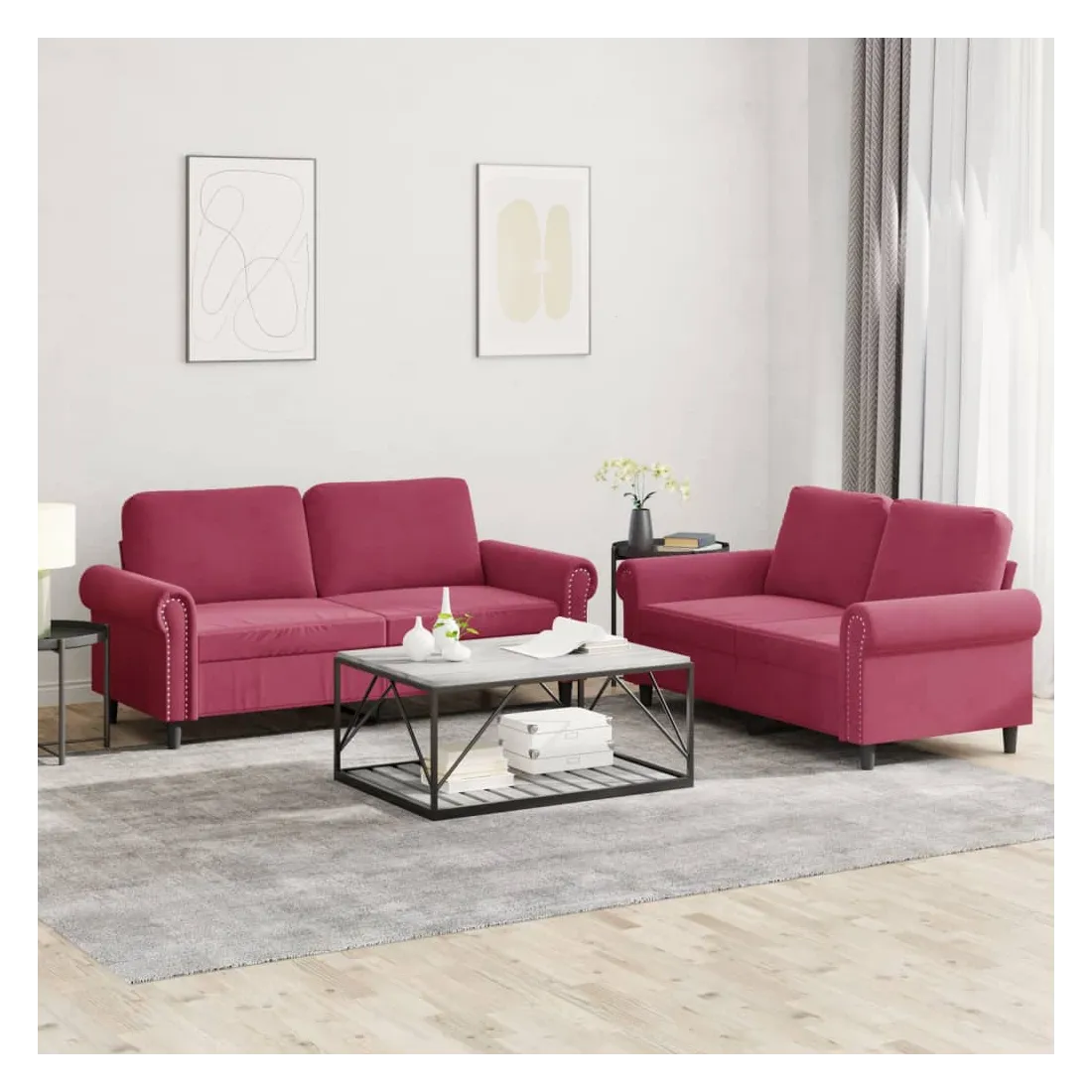 Cet ensemble de canapés est un excellent endroit pour discuter, lire, regarder la télévision ou simplement vous détendre. Il est destiné à être un point central de votre maison. Velours doux : le velours est un tissu doux et confortable, agréable au toucher. Structure robuste et stable : la structure en contreplaqué et en métal du canapé assure robustesse et stabilité. Expérience d'assise confortable : le canapé est très confortable avec le siège, les accoudoirs et les oreillers de dossier bien rembourrés.
