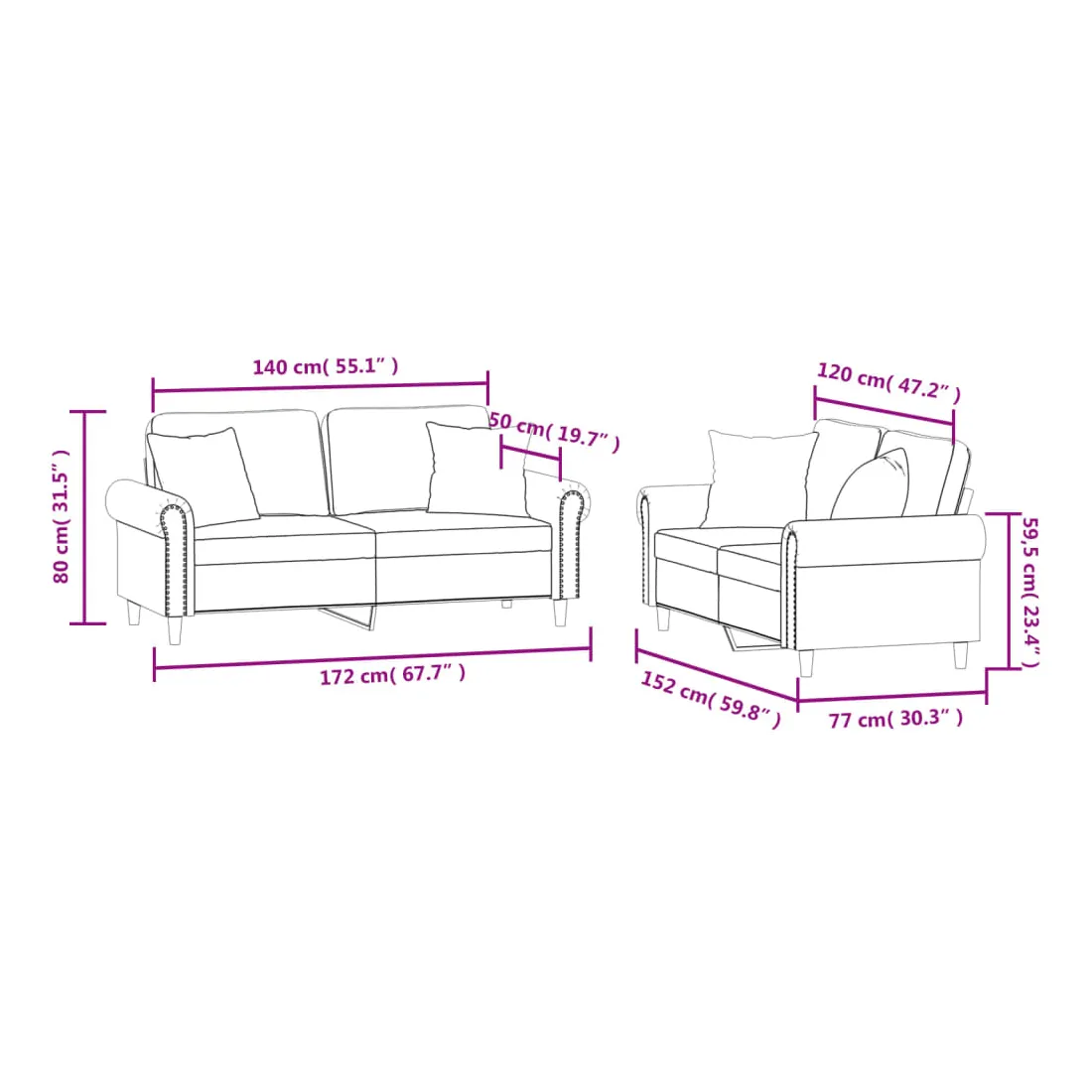 - Canapé à 2 places (140 cm) :