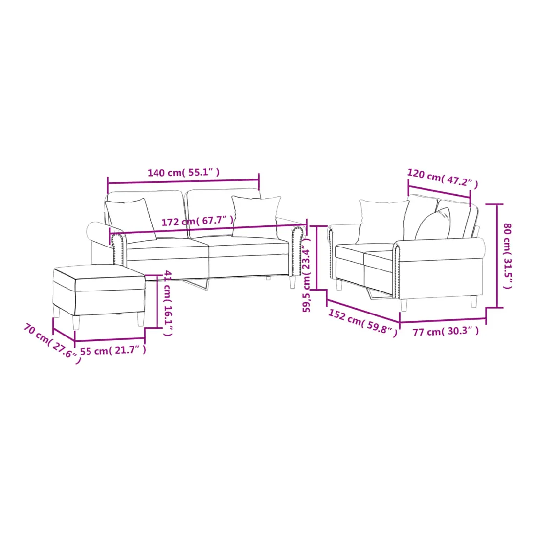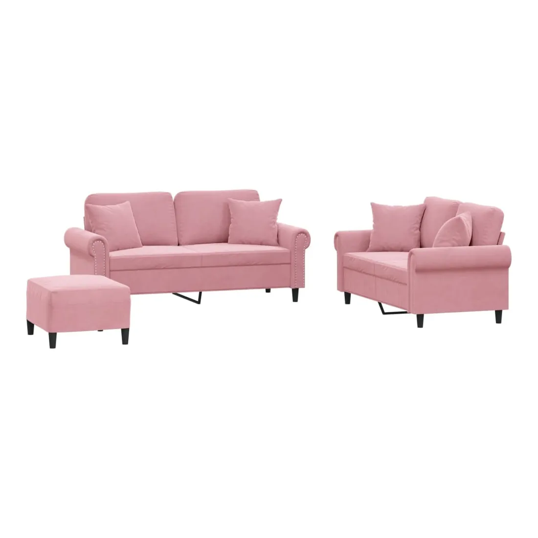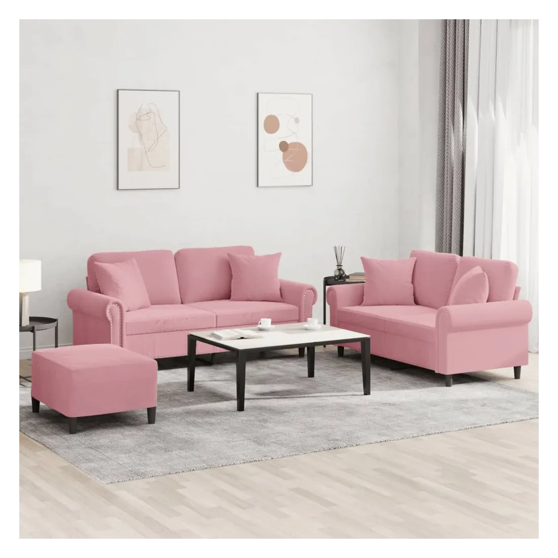 Cet ensemble de canapés est un excellent endroit pour discuter, lire, regarder la télévision ou simplement vous détendre. Il est destiné à être un point central de votre maison. Velours doux : le velours est un tissu doux et confortable, agréable au toucher.Structure robuste et stable : la structure en contreplaqué et en métal du canapé assure robustesse et stabilité.Expérience d'assise confortable : le canapé est très confortable avec le siège, les accoudoirs et les oreillers de dossier bien rembourrés.Oreillers de canapé pratiques : ces oreillers décoratifs carrés non seulement embellissent votre décor mais ils peuvent également apporter un confort supplémentaire lorsque vous êtes assis ou allongé.Pouf polyvalent : ce repose-pied convient pour reposer vos pieds lorsque vous êtes allongé dans un canapé, ou pour vous offrir un siège supplémentaire dans votre pièce. De plus, le design simple et la taille compacte le rendent idéal pour presque tous vos espaces de vie.