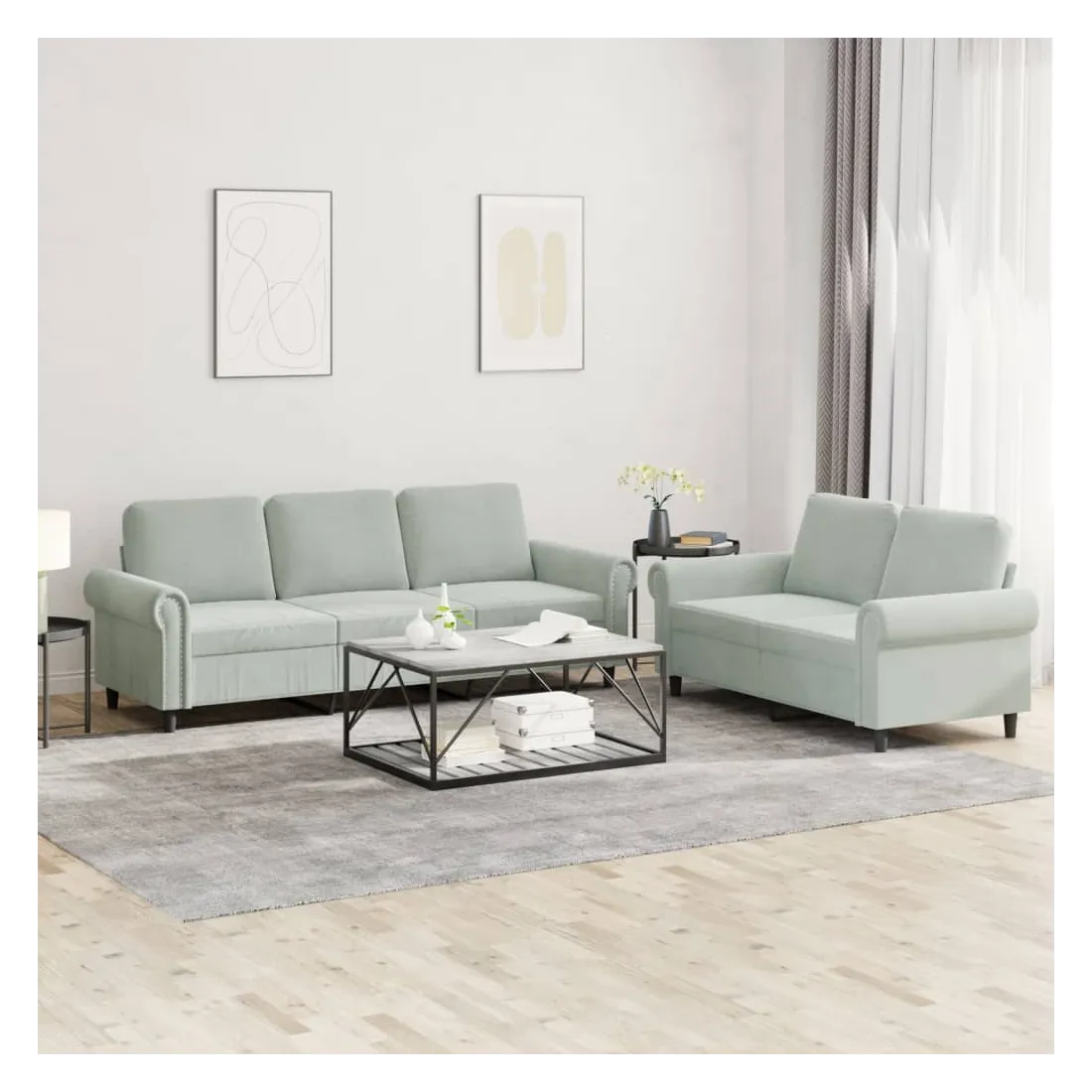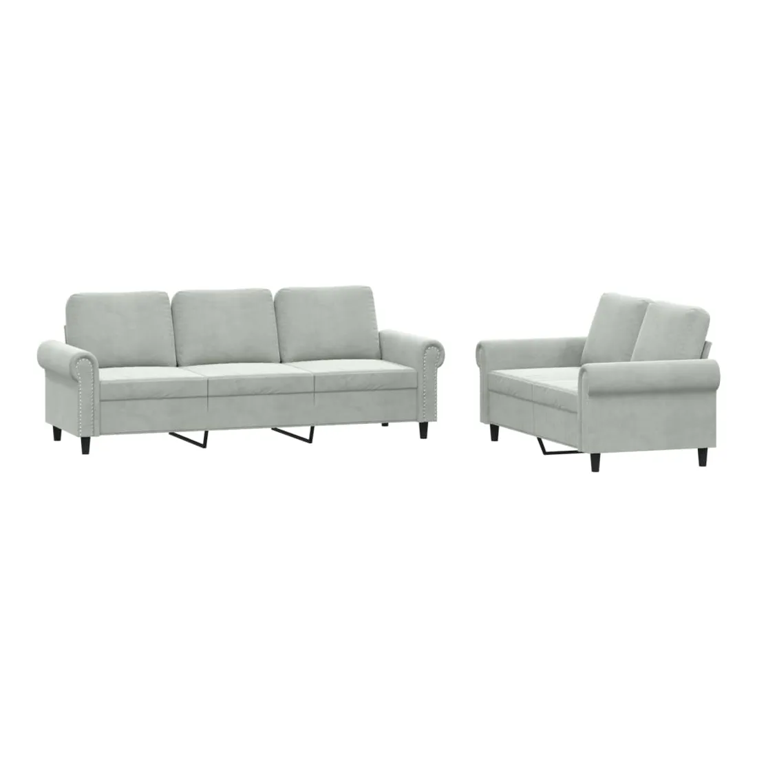 Cet ensemble de canapés est un excellent endroit pour discuter, lire, regarder la télévision ou simplement vous détendre. Il est destiné à être un point central de votre maison. Velours doux : le velours est un tissu doux et confortable, agréable au toucher.Structure robuste et stable : la structure en contreplaqué et en métal du canapé assure robustesse et stabilité.Expérience d'assise confortable : le canapé est très confortable avec le siège, les accoudoirs et les oreillers de dossier bien rembourrés.