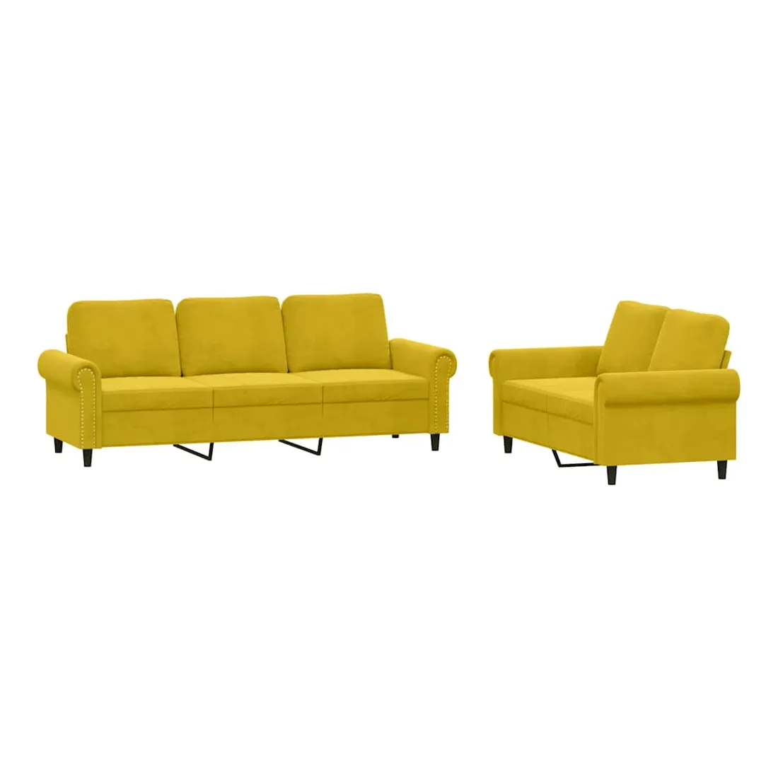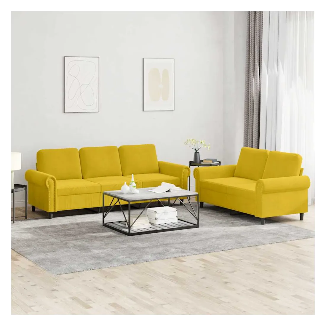 Cet ensemble de canapés est un excellent endroit pour discuter, lire, regarder la télévision ou simplement vous détendre. Il est destiné à être un point central de votre maison. Velours doux : le velours est un tissu doux et confortable, agréable au toucher.Structure robuste et stable : la structure en contreplaqué et en métal du canapé assure robustesse et stabilité.Expérience d'assise confortable : le canapé est très confortable avec le siège, les accoudoirs et les oreillers de dossier bien rembourrés.