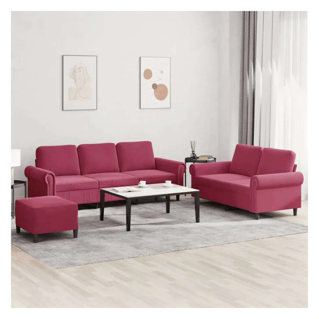 Cet ensemble de canapés est un excellent endroit pour discuter, lire, regarder la télévision ou simplement vous détendre. Il est destiné à être un point central de votre maison. Velours doux : le velours est un tissu doux et confortable, agréable au toucher.Structure robuste et stable : la structure en contreplaqué et en métal du canapé assure robustesse et stabilité.Expérience d'assise confortable : le canapé est très confortable avec le siège, les accoudoirs et les oreillers de dossier bien rembourrés.Pouf polyvalent : ce repose-pied convient pour reposer vos pieds lorsque vous êtes allongé dans un canapé, ou pour vous offrir un siège supplémentaire dans votre pièce. De plus, le design simple et la taille compacte le rendent idéal pour presque tous vos espaces de vie.