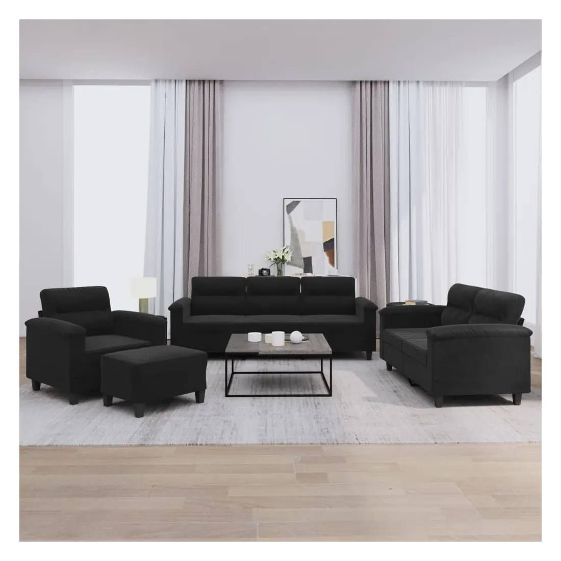 Cet ensemble de canapés est un excellent endroit pour discuter, lire, regarder la télévision ou simplement vous détendre. Il est destiné à être un point central de votre maison. Microfibre résistant : le microfibre est un tissu synthétique composé de fibres ultra-fines, particulièrement résistantes aux taches. Le tissu en microfibre est un excellent choix pour le rembourrage des meubles en raison de sa durabilité et de son nettoyage facile.Structure robuste et stable : la structure en contreplaqué et en métal du canapé assure robustesse et stabilité.Expérience d'assise confortable : le canapé est très confortable avec le siège, les accoudoirs et les oreillers de dossier bien rembourrés.Pouf polyvalent : ce repose-pied convient pour reposer vos pieds lorsque vous êtes allongé dans un canapé, ou pour vous offrir un siège supplémentaire dans votre pièce. De plus, le design simple et la taille compacte le rendent idéal pour presque tous vos espaces de vie.