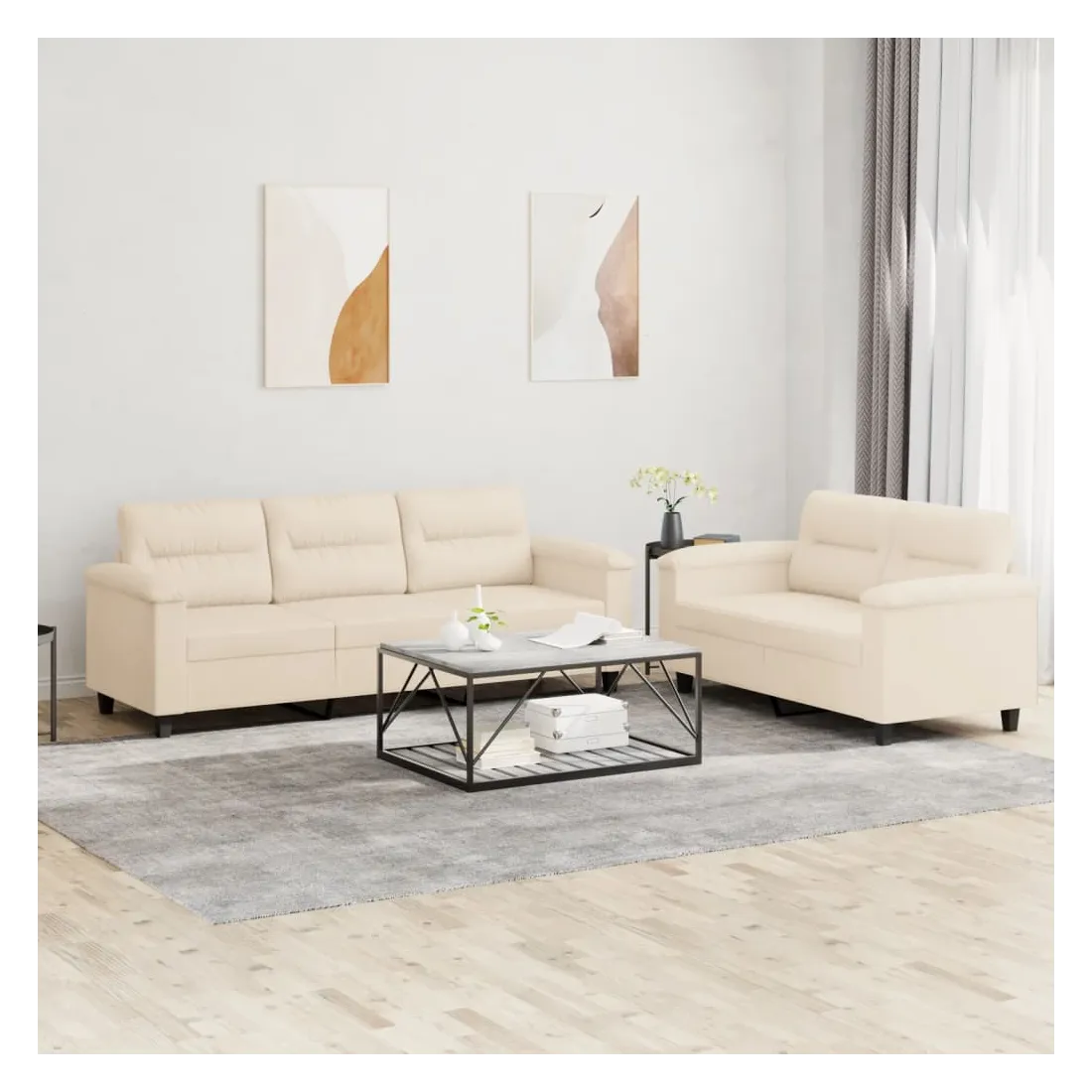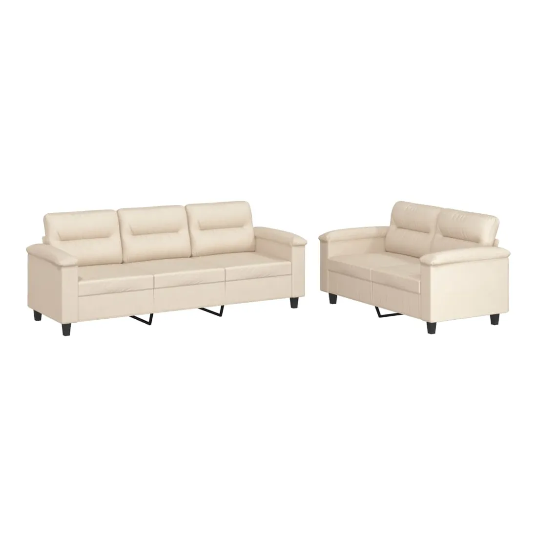 Cet ensemble de canapés est un excellent endroit pour discuter, lire, regarder la télévision ou simplement vous détendre. Il est destiné à être un point central de votre maison. Microfibre résistant : le microfibre est un tissu synthétique composé de fibres ultra-fines, particulièrement résistantes aux taches. Le tissu en microfibre est un excellent choix pour le rembourrage des meubles en raison de sa durabilité et de son nettoyage facile.Structure robuste et stable : la structure en contreplaqué et en métal du canapé assure robustesse et stabilité.Expérience d'assise confortable : le canapé est très confortable avec le siège, les accoudoirs et les oreillers de dossier bien rembourrés.