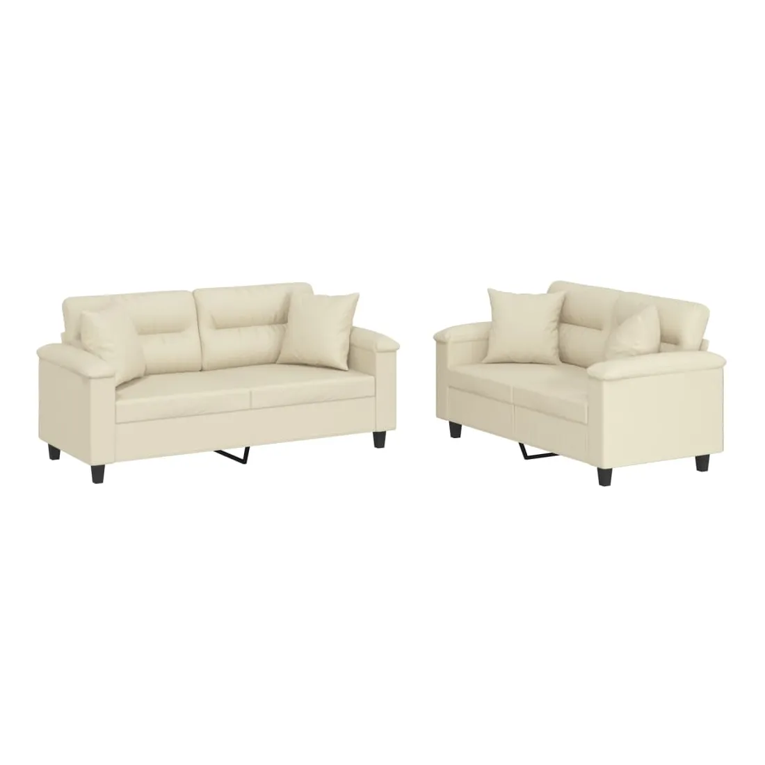 Cet ensemble de canapés est un excellent endroit pour discuter, lire, regarder la télévision ou simplement vous détendre. Il est destiné à être un point central de votre maison. Similicuir durable : le similicuir est un matériau très durable. Il est résistant aux taches, ce qui le rend facile à nettoyer avec un chiffon humide. La surface lisse donne également un aspect luxueux et la beauté du cuir véritable.Structure robuste et stable : la structure en contreplaqué et en métal du canapé assure robustesse et stabilité.Expérience d'assise confortable : le canapé est très confortable avec le siège, les accoudoirs et les oreillers de dossier bien rembourrés.Oreillers de canapé pratiques : ces oreillers décoratifs carrés non seulement embellissent votre décor mais ils peuvent également apporter un confort supplémentaire lorsque vous êtes assis ou allongé.