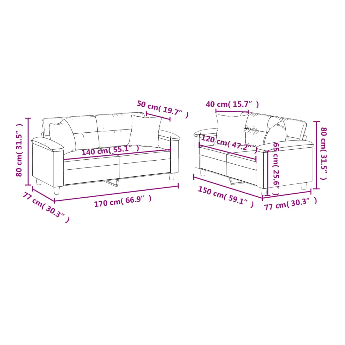 - Taille du coussin (chacun) : 40 x 40 cm (l x P)