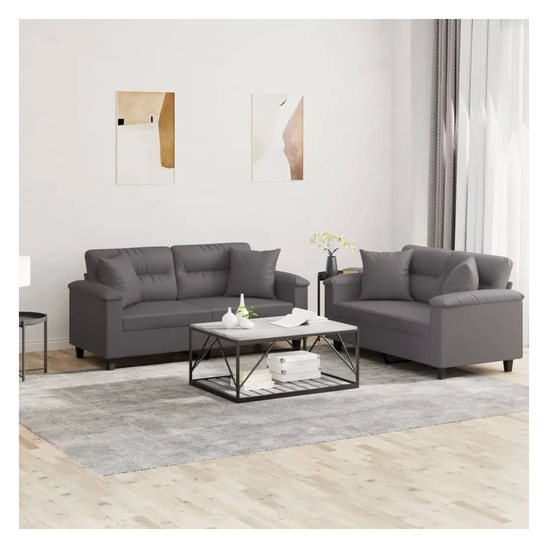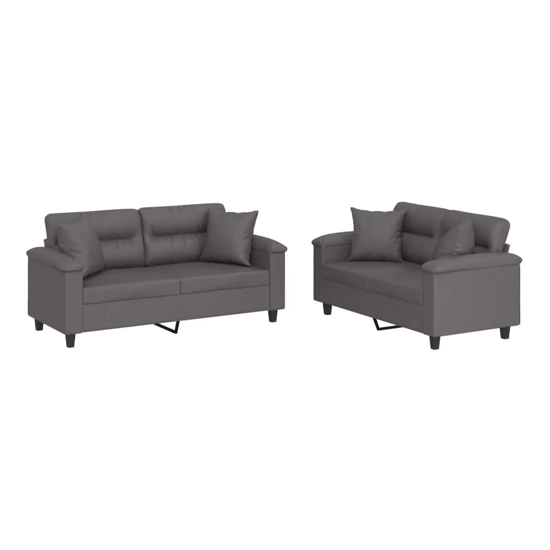 Cet ensemble de canapés est un excellent endroit pour discuter, lire, regarder la télévision ou simplement vous détendre. Il est destiné à être un point central de votre maison. Similicuir durable : le similicuir est un matériau très durable. Il est résistant aux taches, ce qui le rend facile à nettoyer avec un chiffon humide. La surface lisse donne également un aspect luxueux et la beauté du cuir véritable.Structure robuste et stable : la structure en contreplaqué et en métal du canapé assure robustesse et stabilité.Expérience d'assise confortable : le canapé est très confortable avec le siège, les accoudoirs et les oreillers de dossier bien rembourrés.Oreillers de canapé pratiques : ces oreillers décoratifs carrés non seulement embellissent votre décor mais ils peuvent également apporter un confort supplémentaire lorsque vous êtes assis ou allongé.