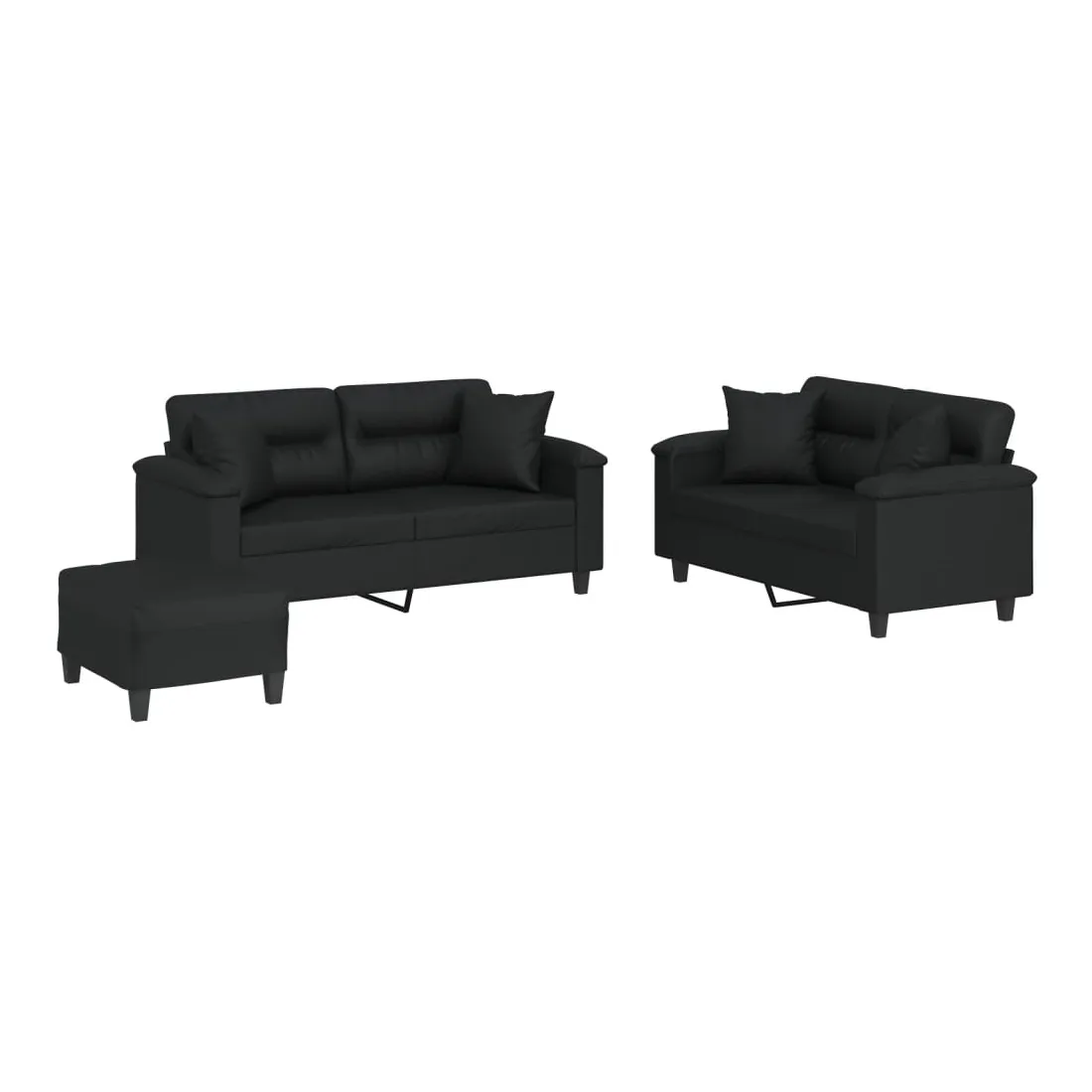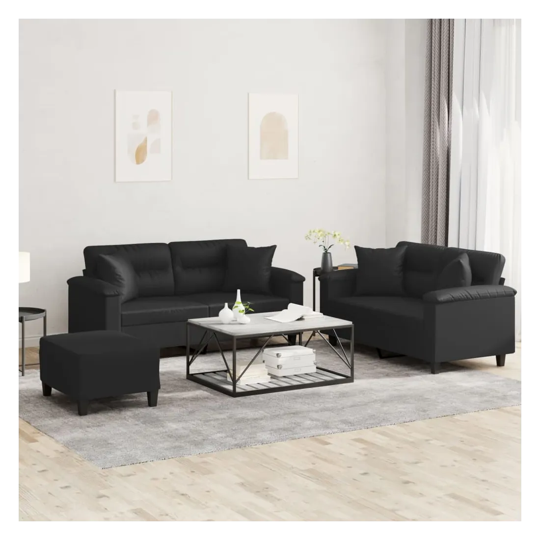 Cet ensemble de canapés est un excellent endroit pour discuter, lire, regarder la télévision ou simplement vous détendre. Il est destiné à être un point central de votre maison. Similicuir durable : le similicuir est un matériau très durable. Il est résistant aux taches, ce qui le rend facile à nettoyer avec un chiffon humide. La surface lisse donne également un aspect luxueux et la beauté du cuir véritable.Structure robuste et stable : la structure en contreplaqué et en métal du canapé assure robustesse et stabilité.Expérience d'assise confortable : le canapé est très confortable avec le siège, les accoudoirs et les oreillers de dossier bien rembourrés.Oreillers de canapé pratiques : ces oreillers décoratifs carrés non seulement embellissent votre décor mais ils peuvent également apporter un confort supplémentaire lorsque vous êtes assis ou allongé.Pouf polyvalent : ce repose-pied convient pour reposer vos pieds lorsque vous êtes allongé dans un canapé, ou pour vous offrir un siège supplémentaire dans votre pièce. De plus, le design simple et la taille compacte le rendent idéal pour presque tous vos espaces de vie.
