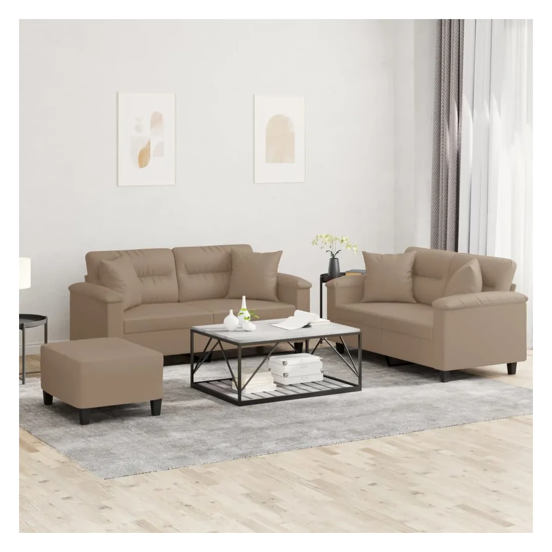 Ensemble de canapés 3 pcs avec coussins cappuccino similicuir