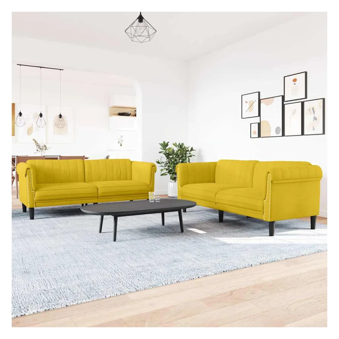Cet ensemble de canapés est un excellent endroit pour discuter, lire, regarder la télévision ou simplement vous détendre. Il est destiné à être un point central de votre maison. Velours doux : le velours est un tissu doux et confortable, agréable au toucher. Expérience de siège confortable : la chaise de canapé est très confortable grâce à l'assise, aux accoudoirs et au dossier très rembourrés. Pieds de soutien : le canapé rembourré est soutenu par des pieds robustes, qui assurent sa stabilité, sa sécurité et sa fermeté. Design accrocheur : doté d'un design simple mais moderne, ce siège de salon est destiné à attirer l'attention dans votre pièce.