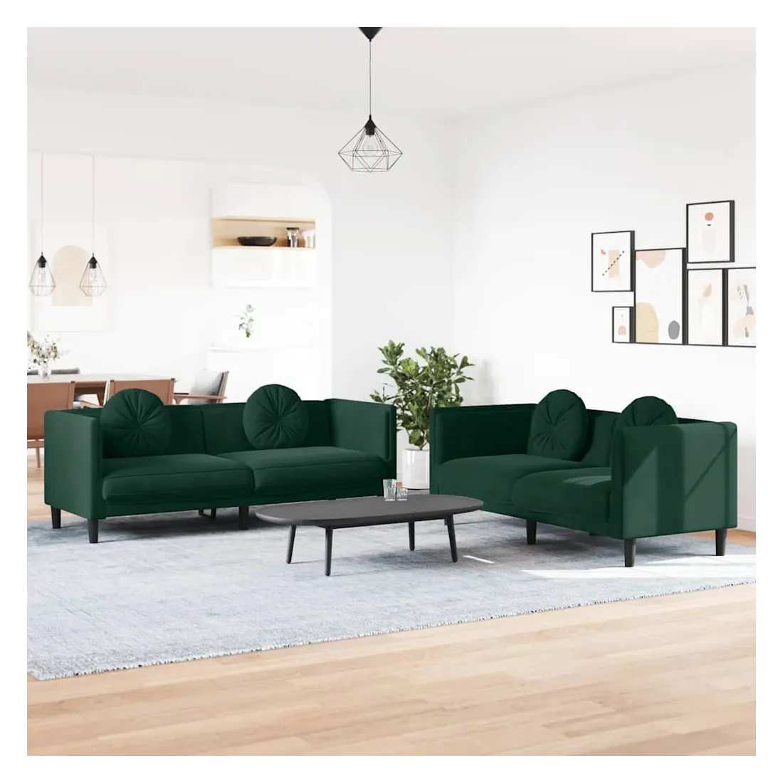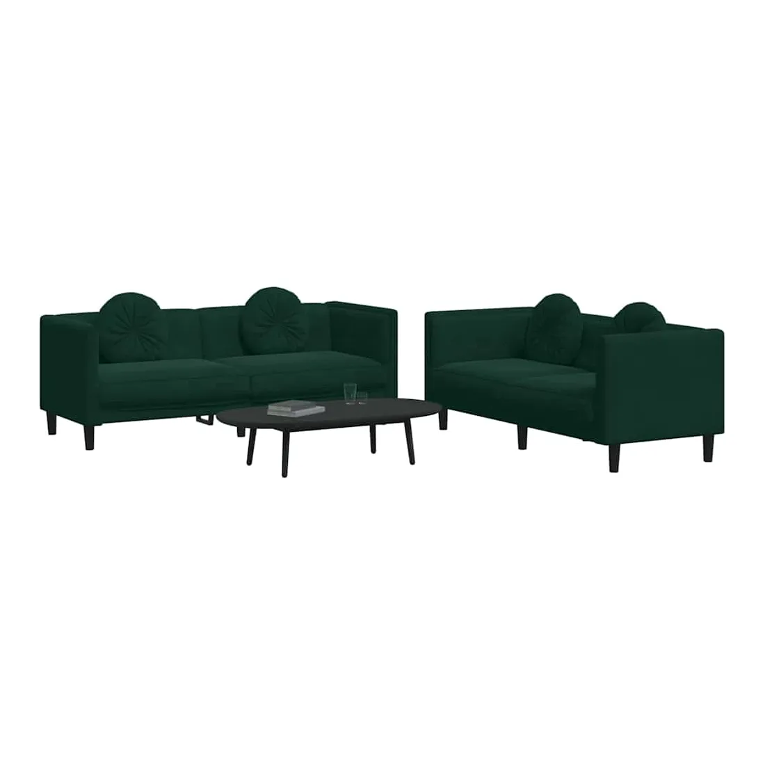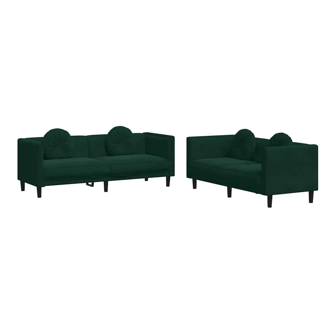 Cet ensemble de canapés est un excellent endroit pour discuter, lire, regarder la télévision ou simplement vous détendre. Il est destiné à être un point central de votre maison. Velours doux : le velours est un tissu doux et confortable, agréable au toucher.Expérience d'assise confortable : le canapé est très confortable grâce au siège et aux accoudoirs épais et rembourrés.Oreillers ronds pratiques : ces oreillers décoratifs ronds non seulement embellissent votre décor mais ils peuvent également apporter un confort supplémentaire lorsque vous êtes assis ou allongé.Pieds de soutien : le canapé rembourré est soutenu par des pieds robustes, qui assurent sa stabilité, sa sécurité et sa fermeté.Design accrocheur : doté d'un design simple mais moderne, ce siège de salon est destiné à attirer l'attention dans votre pièce.