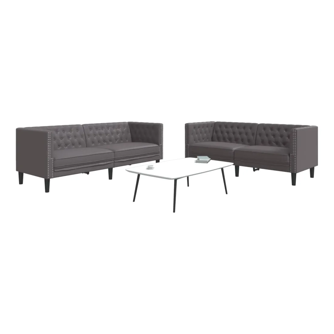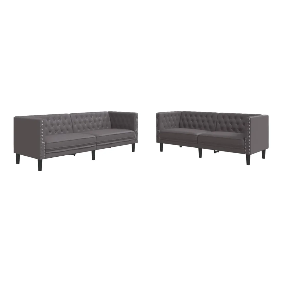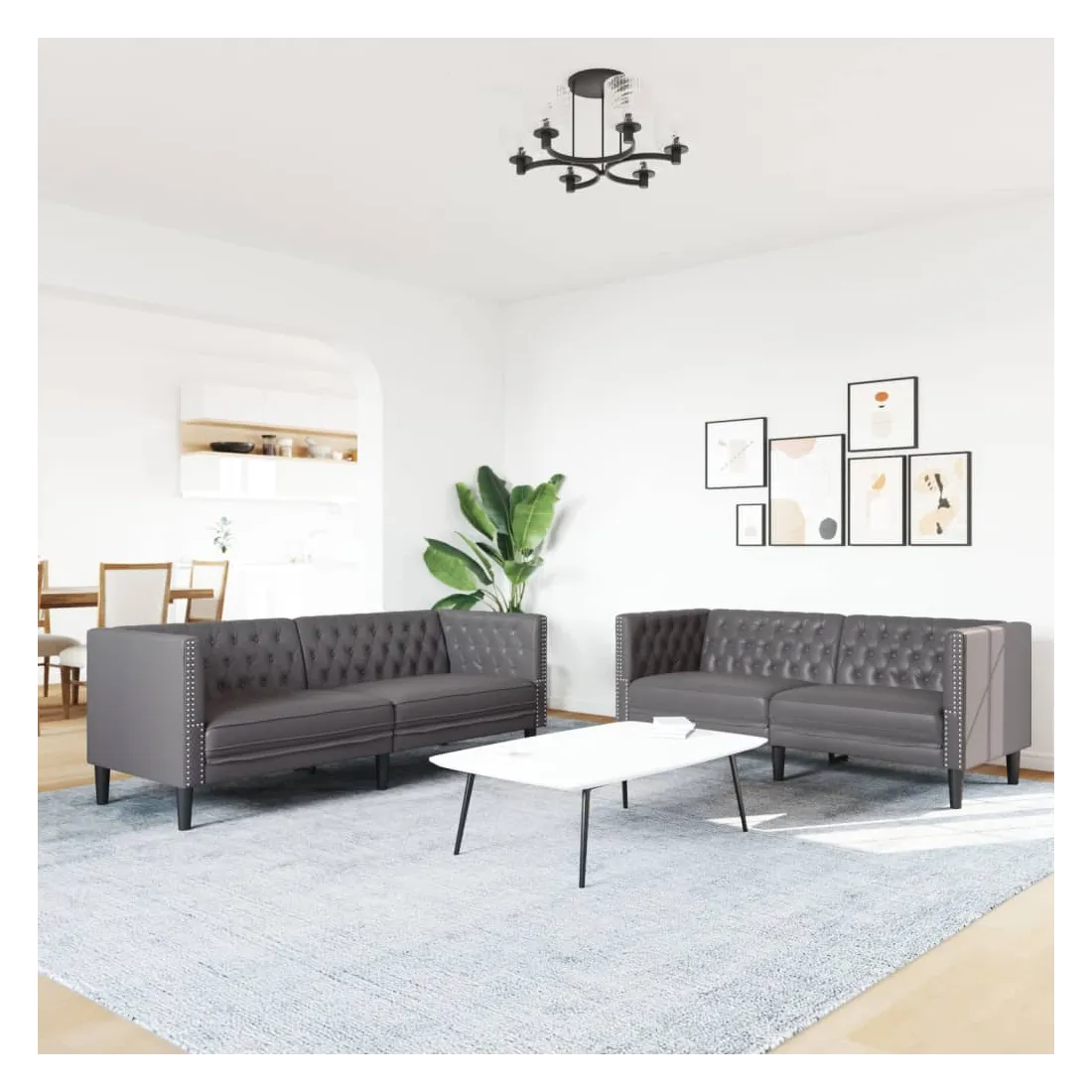 Cet ensemble de canapé Chesterfield est un excellent endroit pour discuter, lire, regarder la télévision ou simplement se détendre. Il est destiné à être un point central dans votre maison. Longue durée de vie et entretien facile : le similicuir est un matériau très durable qui résiste aux taches, ce qui le rend facile à nettoyer avec un chiffon humide. Sa surface lisse lui confère un aspect élégant qui ressemble à celui du cuir véritable.Expérience d'assise confortable : le canapé est très confortable avec les sièges, les accoudoirs et les oreillers de dossier bien rembourrés.Style Chesterfield : avec le dossier et les accoudoirs classiques à boutons tuftés, et une hauteur de dossier et d'accoudoir uniforme, le canapé rehaussera n'importe quelle pièce, offrant à la fois style et confort.Pieds de soutien : le canapé rembourré est soutenu par des pieds robustes, qui assurent sa stabilité, sa sécurité et sa fermeté.