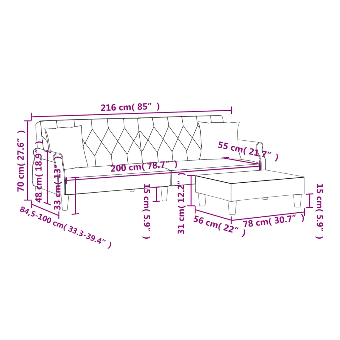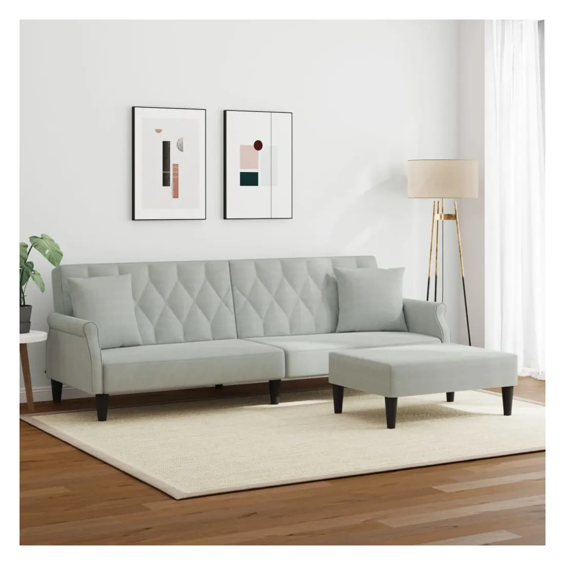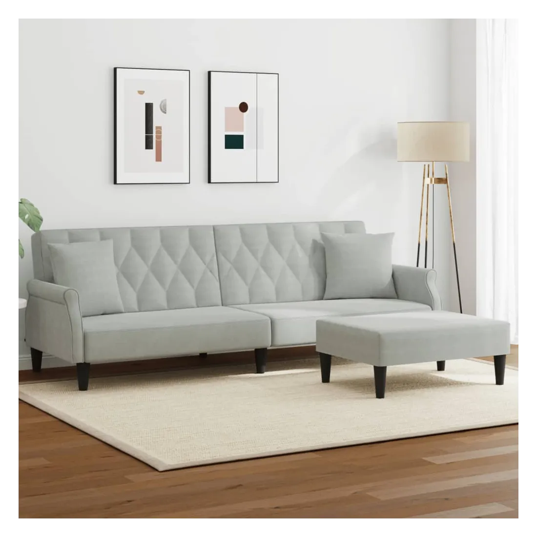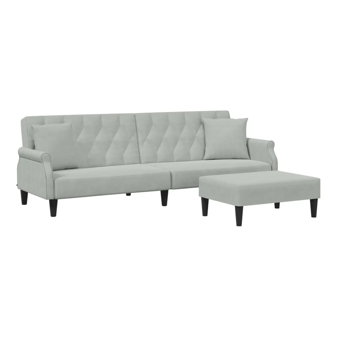 Ce canapé-lit avec repose-pied est une solution parfaite pour accueillir des invités pour la nuit tout en offrant un espace confortable pour s'asseoir pendant la journée. Matériau durable : le velours est un tissu doux et confortable, agréable au toucher.Dossier réglable : vous pouvez pousser les deux coussins de dossier séparés partiellement ou complètement vers le bas pour créer un endroit idéal pour une sieste ou un lit double.Cadre robuste et stable : le cadre en bois du canapé-lit assure robustesse et stabilité.Confort supplémentaire : ce repose-pied est adapté pour y mettre vos pieds en fin de journée ou pour vous offrir un siège supplémentaire dans votre salon ou votre entrée principale.