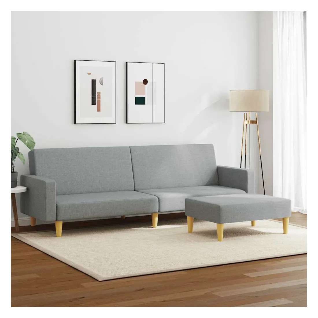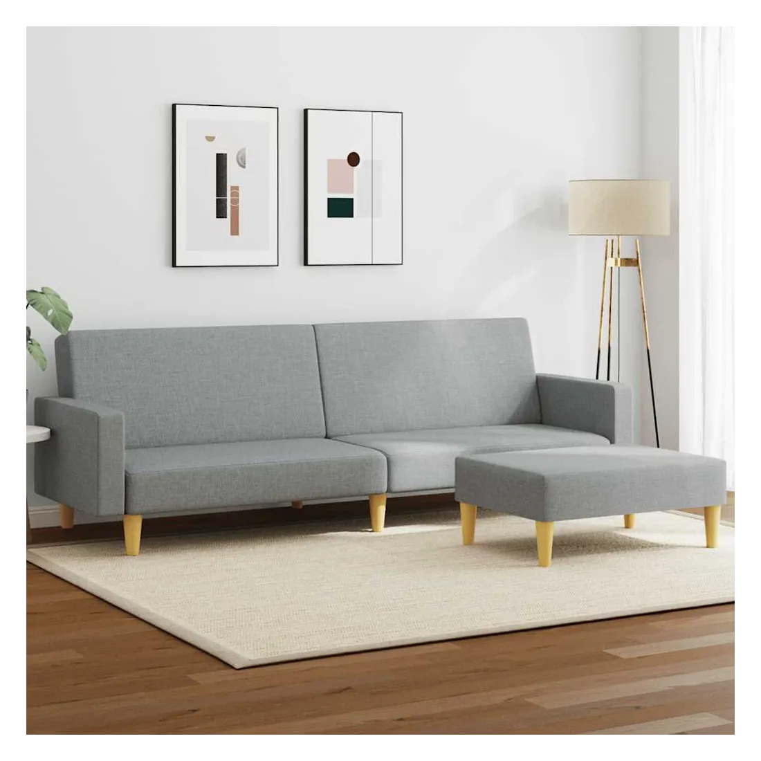 Ce canapé-lit avec repose-pied est une solution parfaite pour accueillir des invités pour la nuit tout en offrant un espace confortable pour s'asseoir pendant la journée. Matériau durable : le tissu présente un aspect simple et épuré, et il est respirant et durable.Dossier réglable : vous pouvez pousser les deux coussins de dossier séparés partiellement ou complètement vers le bas pour créer un endroit idéal pour une sieste ou un lit double.Cadre robuste et stable : le cadre en bois du canapé-lit assure robustesse et stabilité.Confort supplémentaire : ce repose-pied est adapté pour y mettre vos pieds en fin de journée ou pour vous offrir un siège supplémentaire dans votre salon ou votre entrée principale.