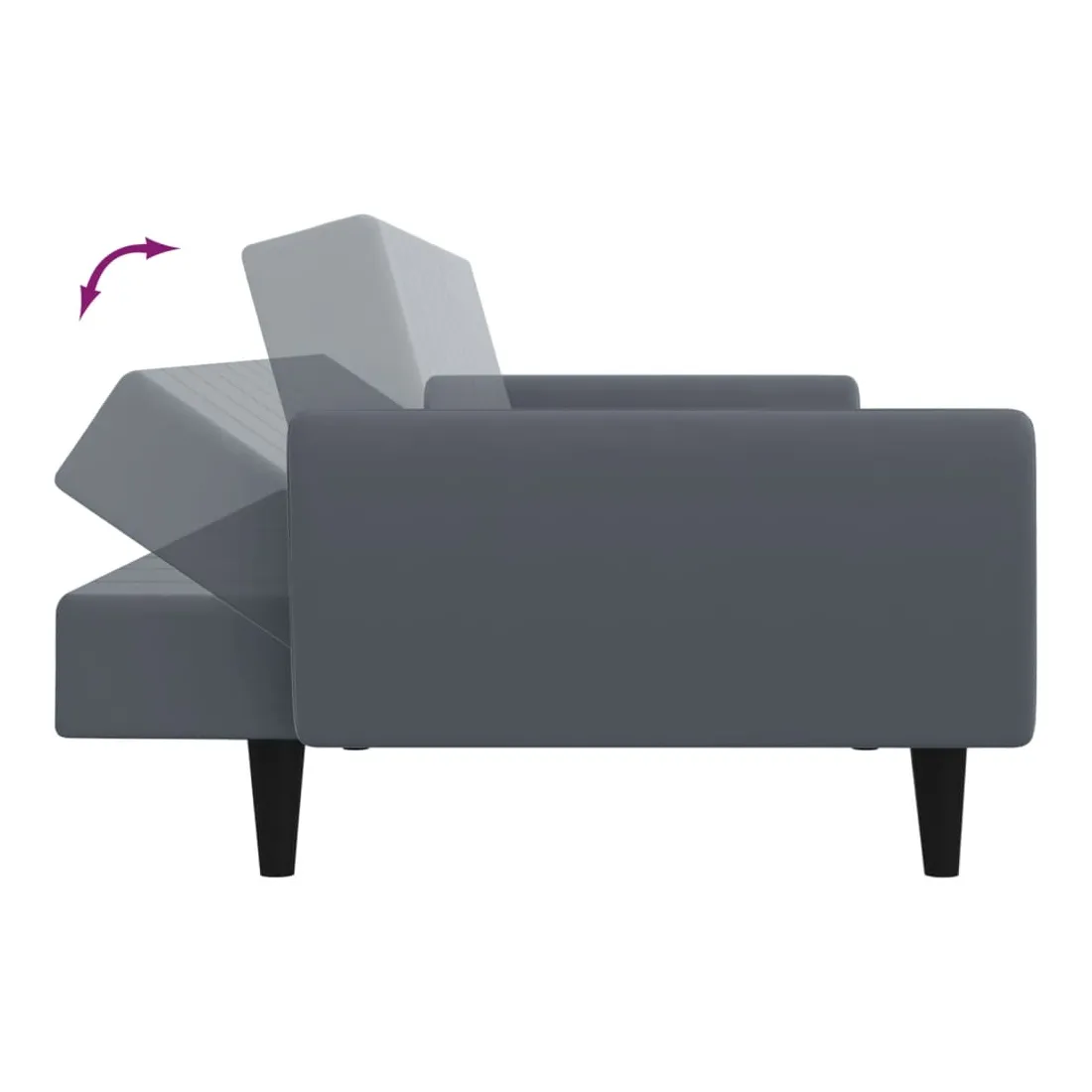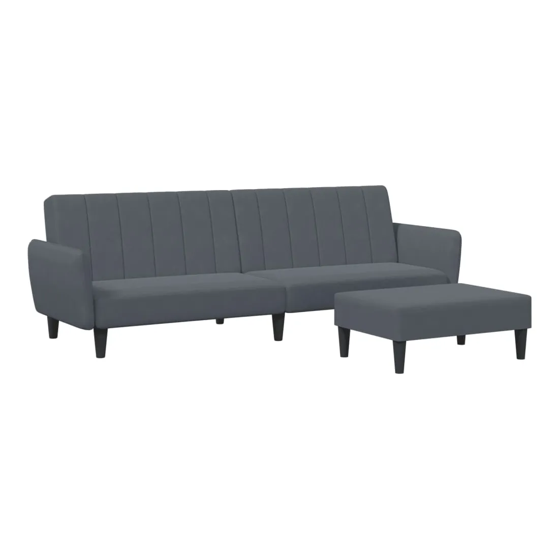 Canapé-lit à 2 places avec repose-pied gris foncé velours