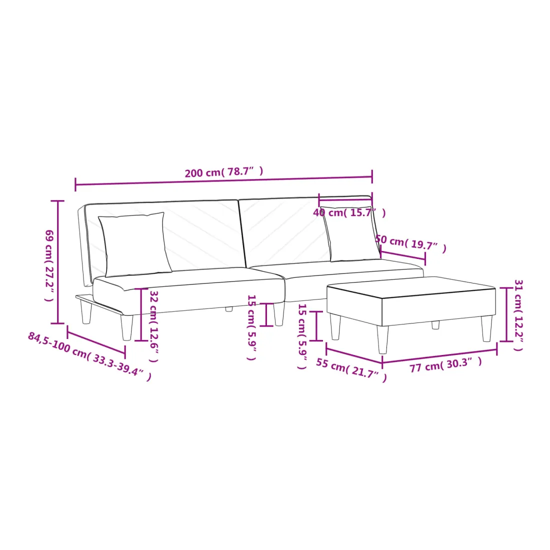 Cet ensemble de canapés est un excellent endroit pour discuter, lire, regarder la télévision ou simplement vous détendre. Il est destiné à être un point central de votre maison. Velours doux : le velours est un tissu doux et confortable, agréable au toucher. Fonction 2 en 1 : le canapé-lit se transforme rapidement et facilement d'un canapé en un lit et à nouveau en canapé. Vous pouvez pousser les deux dossiers séparés partiellement ou complètement vers le bas pour créer un endroit idéal pour une sieste ou un lit double. Pouf polyvalent : ce repose-pied convient pour reposer vos pieds lorsque vous êtes allongé dans un canapé, ou pour vous offrir un siège supplémentaire dans votre pièce. De plus, le design simple et la taille compacte le rendent idéal pour presque tous vos espaces de vie. Expérience de siège confortable : la chaise de canapé est très confortable grâce à l'assise et au dossier très rembourrés. Pieds de soutien : le canapé rembourré est soutenu par des pieds robustes, qui assurent sa stabilité, sa sécurité et sa fermeté.