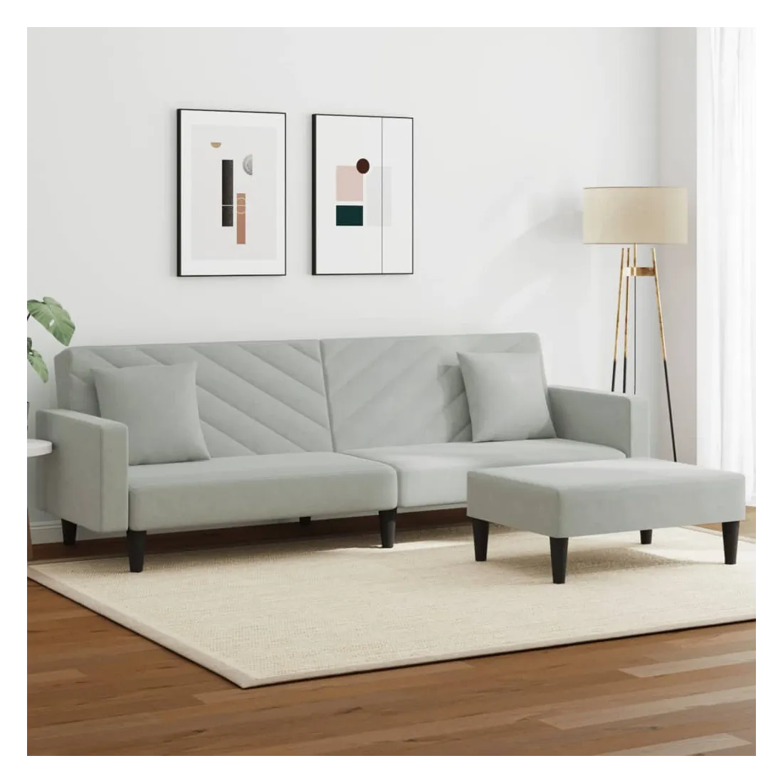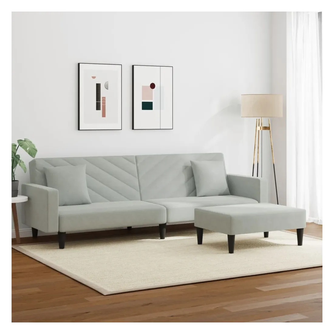 vidaXLCet ensemble de canapés est un excellent endroit pour discuter, lire, regarder la télévision ou simplement vous détendre. Il est destiné à être un point central de votre maison. Velours doux : le velours est un tissu doux et confortable, agréable au toucher. Fonction 2 en 1 : le canapé-lit se transforme rapidement et facilement d'un canapé en un lit et à nouveau en canapé. Vous pouvez pousser les deux dossiers séparés partiellement ou complètement vers le bas pour créer un endroit idéal pour une sieste ou un lit double. Pouf polyvalent : ce repose-pied convient pour reposer vos pieds lorsque vous êtes allongé dans un canapé, ou pour vous offrir un siège supplémentaire dans votre pièce. De plus, le design simple et la taille compacte le rendent idéal pour presque tous vos espaces de vie. Expérience de siège confortable : la chaise de canapé est très confortable grâce à l'assise et au dossier très rembourrés. Pieds de soutien : le canapé rembourré est soutenu par des pieds robustes, qui assurent sa stabilité, sa sécurité et sa fermeté.