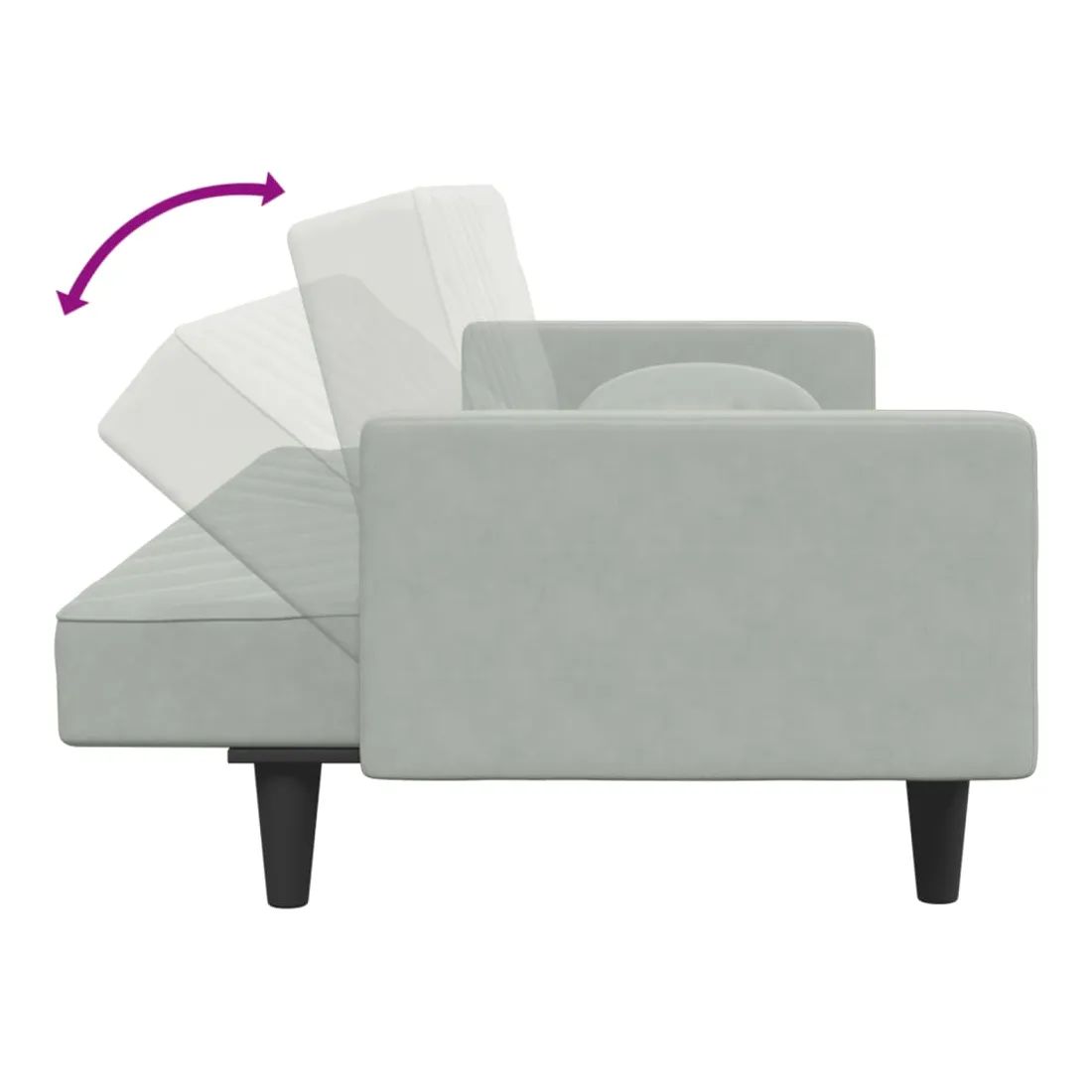 Ensemble de canapés 2 pcs avec coussins gris clair velours