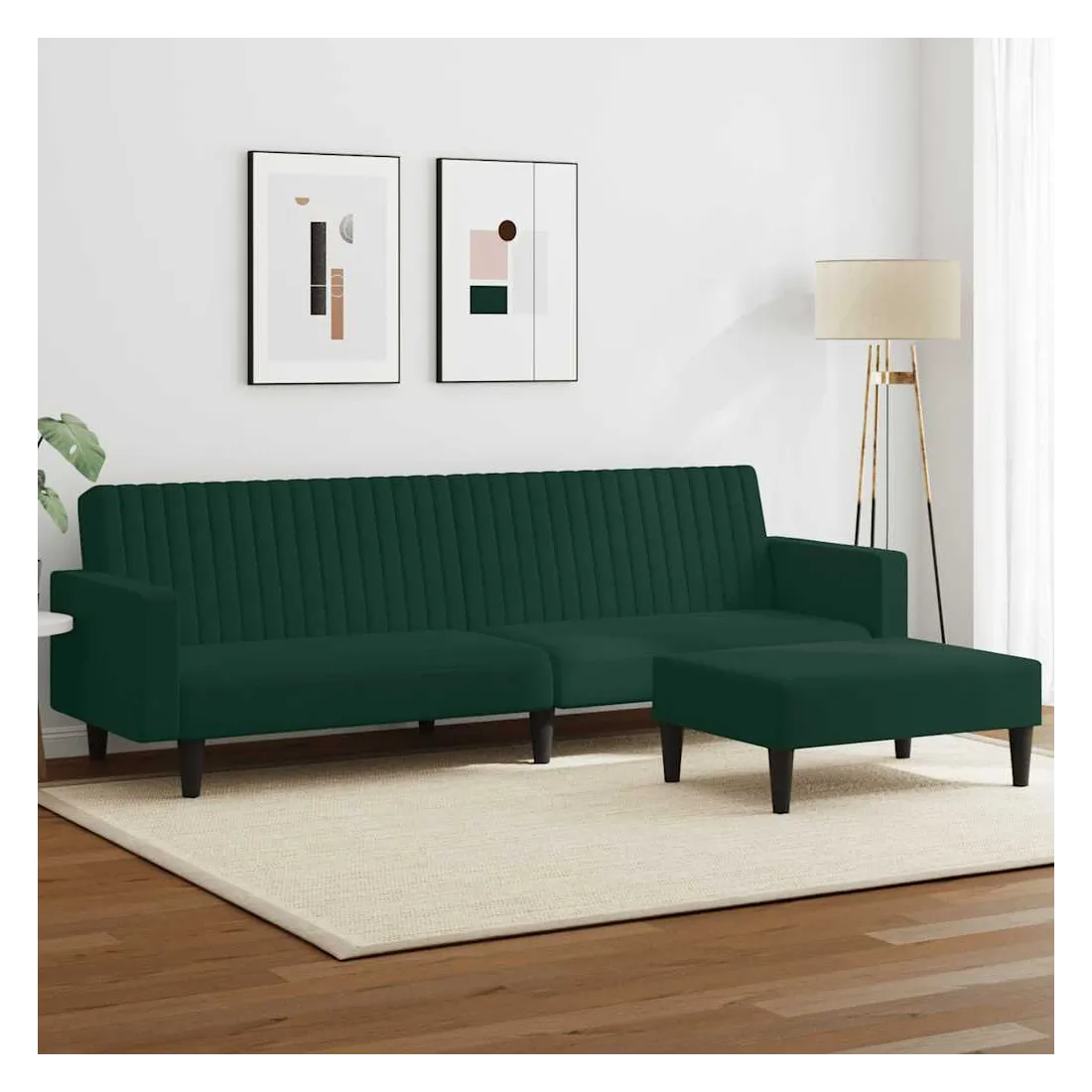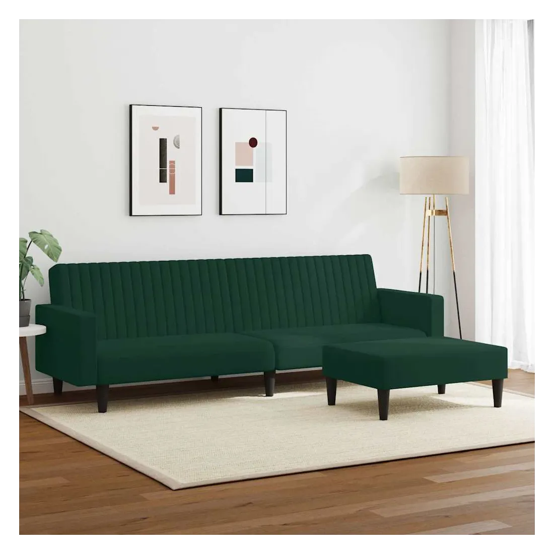 Cet ensemble de canapés est un excellent endroit pour discuter, lire, regarder la télévision ou simplement vous détendre. Il est destiné à être un point central de votre maison. Velours doux : le velours est un tissu doux et confortable, agréable au toucher. Fonction 2 en 1 : le canapé-lit se transforme rapidement et facilement d'un canapé en un lit et à nouveau en canapé. Vous pouvez pousser les deux dossiers séparés partiellement ou complètement vers le bas pour créer un endroit idéal pour une sieste ou un lit double. Pouf polyvalent : ce repose-pied convient pour reposer vos pieds lorsque vous êtes allongé dans un canapé, ou pour vous offrir un siège supplémentaire dans votre pièce. De plus, le design simple et la taille compacte le rendent idéal pour presque tous vos espaces de vie. Expérience de siège confortable : la chaise de canapé est très confortable grâce à l'assise et au dossier très rembourrés. Pieds de soutien : le canapé rembourré est soutenu par des pieds robustes, qui assurent sa stabilité, sa sécurité et sa fermeté.