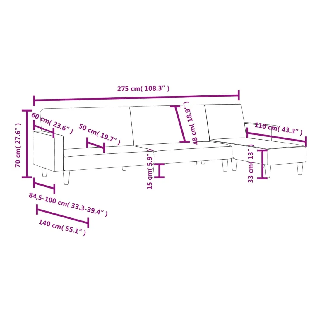 Cet ensemble de canapés est un excellent endroit pour discuter, lire, regarder la télévision ou simplement vous détendre. Il est destiné à être un point central de votre maison. Matériau durable : le tissu présente un aspect simple et épuré, et il est respirant et durable.Fonction 2 en 1 : le canapé-lit se transforme rapidement et facilement d'un canapé en un lit et à nouveau en canapé. Vous pouvez pousser les deux dossiers séparés partiellement ou complètement vers le bas pour créer un endroit idéal pour une sieste ou un lit double. Chaise longue multifonctionnelle : la chaise longue est un choix judicieux pour les espaces limités. Elle offre trois positions convertibles pour s'asseoir, se prélasser et dormir. Elle peut donc être une chaise longue inclinable confortable pour un usage quotidien ou un lit temporaire pour les invités.Expérience de siège confortable : le canapé de relaxation est très confortable grâce à l'assise et au dossier bien rembourrés.Cadre solide et stable : ce canapé est doté d’un cadre en bois qui offre stabilité et robustesse.