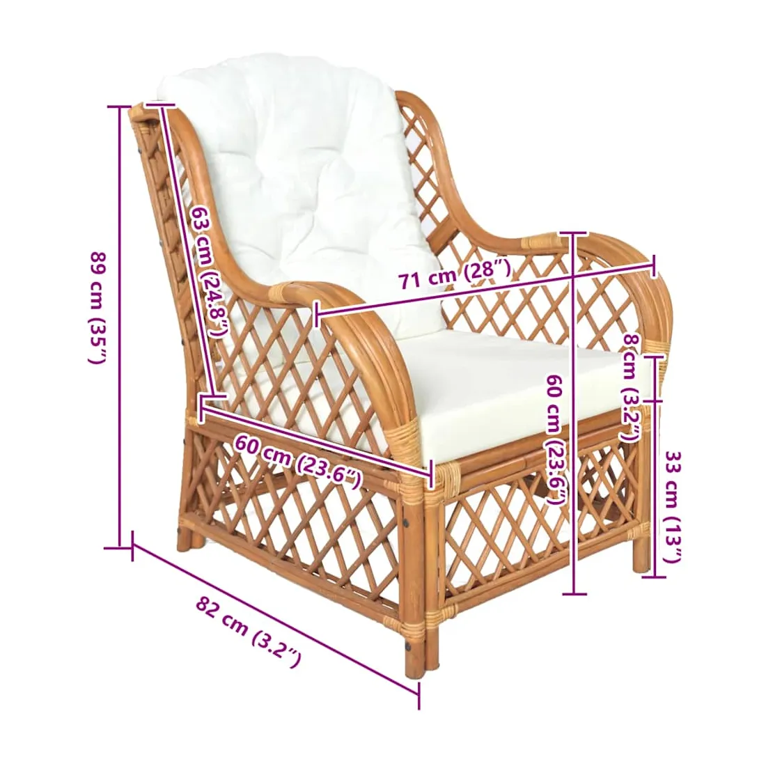 - Hauteur d’assise (sans coussin) : 33 cm