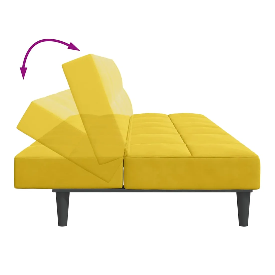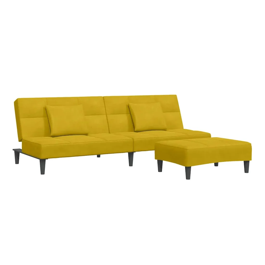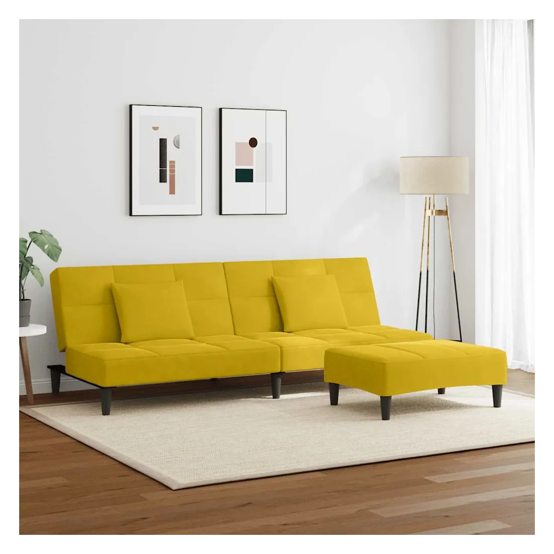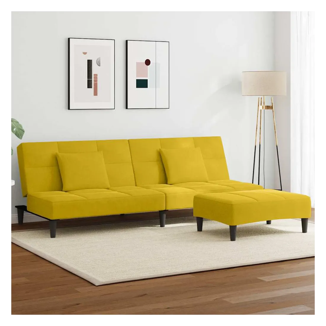Canapé-lit à 2 places avec repose-pied jaune velours