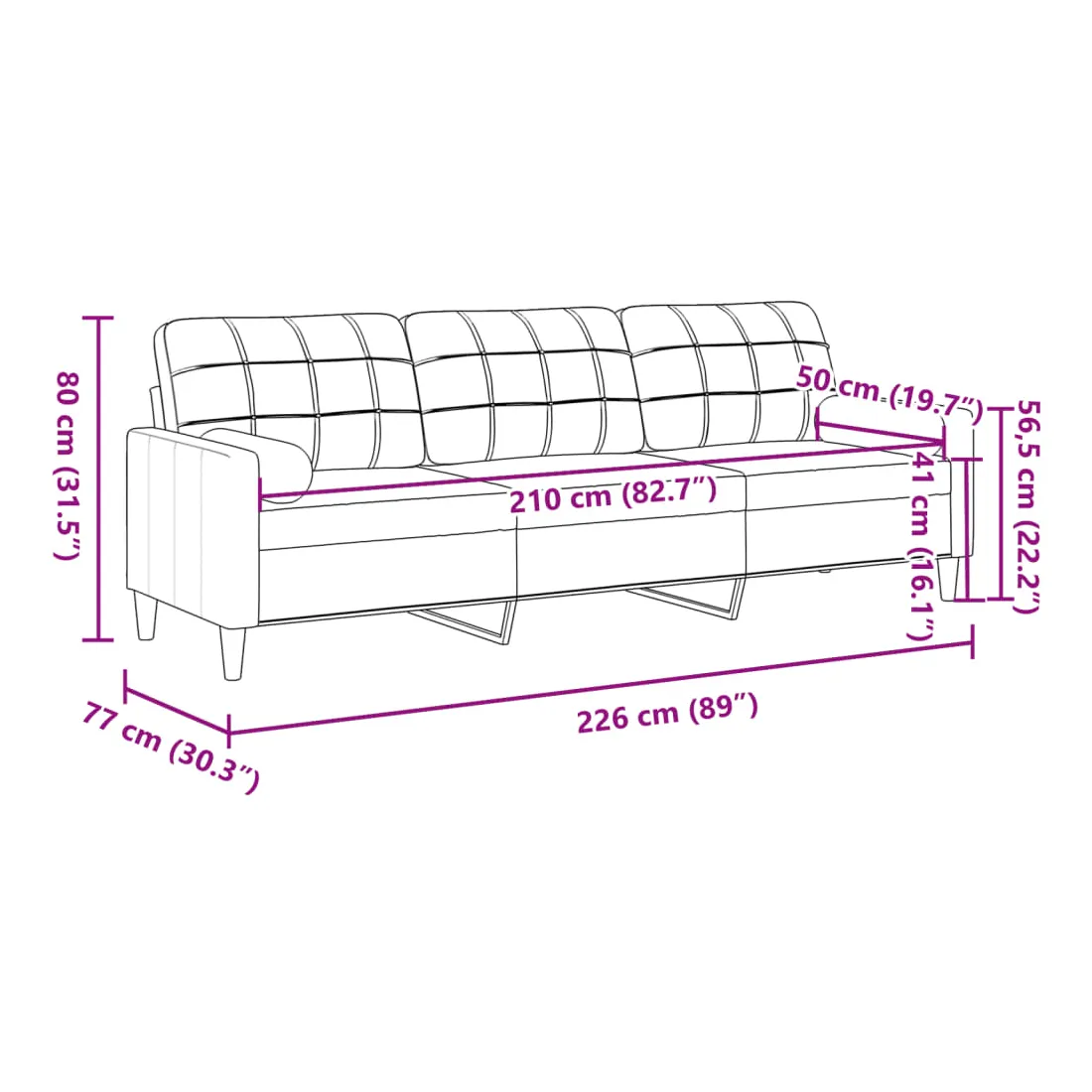 Ce canapé à 3 places est un excellent endroit pour discuter, lire, regarder la télévision ou simplement vous détendre. Il est destiné à être un point central dans votre maison. Matériau doux et durable : le tissu en polyester offre une combinaison de douceur, de respirabilité et de durabilité, vous garantissant un confort et une convivialité ultimes.Cadre robuste et stable : le cadre en métal du canapé de salon assure robustesse et stabilité.Expérience d'assise confortable : le canapé est très confortable avec les sièges, les accoudoirs et les oreillers de dossier bien rembourrés.Housses d'oreillers amovibles : grâce à la fermeture éclair, les housses de ces oreillers de traversin sont faciles à retirer et à nettoyer en cas de besoin.Design accrocheur : doté d'un design simple mais moderne, ce canapé est destiné à attirer l'attention dans votre chambre.