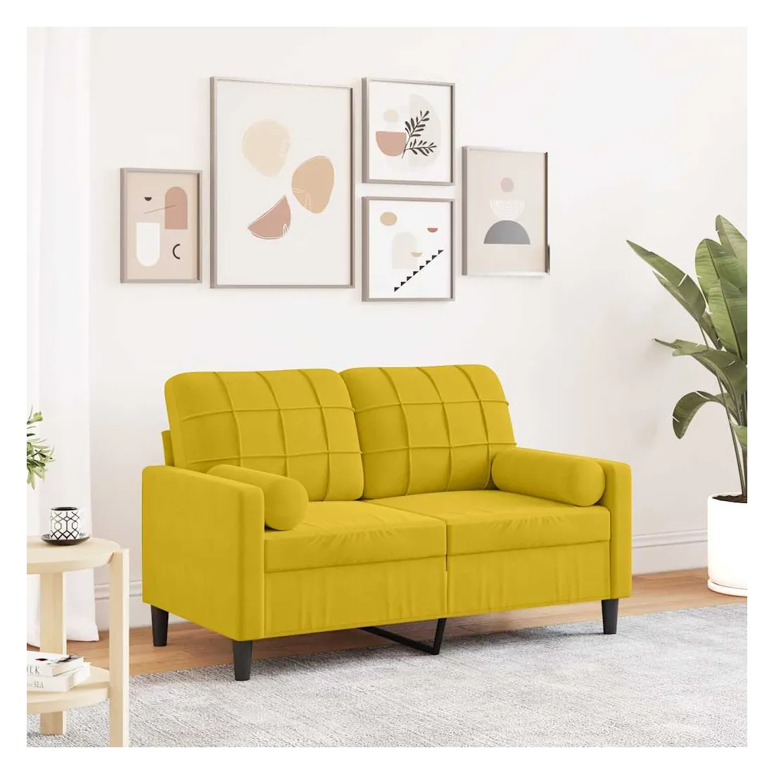 Ce canapé est un excellent endroit pour discuter, lire, regarder la télévision ou simplement vous détendre. Il est destiné à être un point central dans votre maison. Matériau doux et confortable : le tissu en velours présente une surface douce et lisse qui offre une sensation agréable contre la peau, vous apportant chaleur et confort ultime.Cadre robuste et stable : le cadre en métal du canapé de salon assure robustesse et stabilité.Expérience d'assise confortable : le canapé est très confortable avec les sièges, les accoudoirs et les oreillers de dossier bien rembourrés.Housses d'oreillers amovibles : grâce à la fermeture éclair, les housses de ces oreillers de traversin sont faciles à retirer et à nettoyer en cas de besoin.Design accrocheur : doté d'un design simple mais moderne, ce canapé est destiné à attirer l'attention dans votre chambre.