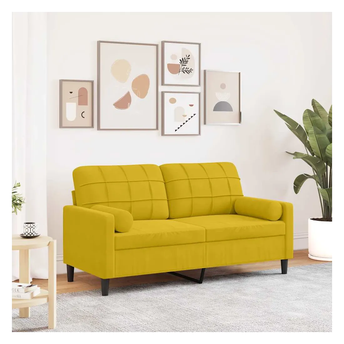 Ce canapé est un excellent endroit pour discuter, lire, regarder la télévision ou simplement vous détendre. Il est destiné à être un point central dans votre maison. Matériau doux et confortable : le tissu en velours présente une surface douce et lisse qui offre une sensation agréable contre la peau, vous apportant chaleur et confort ultime.Cadre robuste et stable : le cadre en métal du canapé de salon assure robustesse et stabilité.Expérience d'assise confortable : le canapé est très confortable avec les sièges, les accoudoirs et les oreillers de dossier bien rembourrés.Housses d'oreillers amovibles : grâce à la fermeture éclair, les housses de ces oreillers de traversin sont faciles à retirer et à nettoyer en cas de besoin.Design accrocheur : doté d'un design simple mais moderne, ce canapé est destiné à attirer l'attention dans votre chambre.