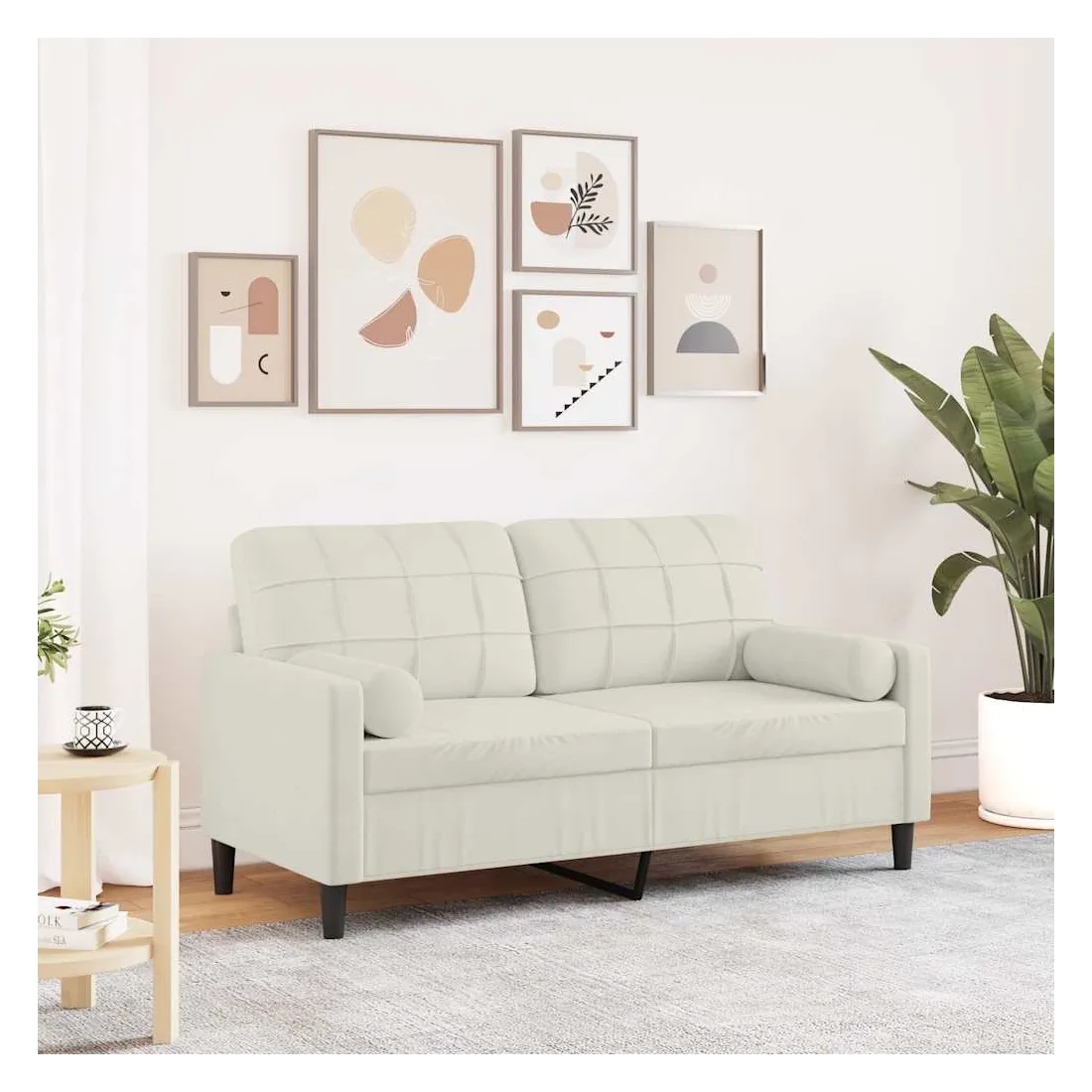 Canapé 2 places avec oreillers décoratifs crème 140 cm velours