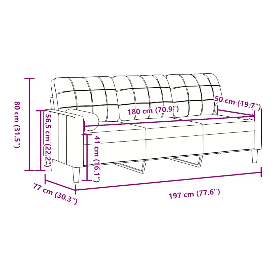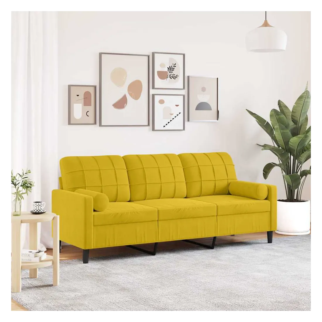 Ce canapé à 3 places est un excellent endroit pour discuter, lire, regarder la télévision ou simplement vous détendre. Il est destiné à être un point central dans votre maison. Matériau doux et confortable : le tissu en velours présente une surface douce et lisse qui offre une sensation agréable contre la peau, vous apportant chaleur et confort ultime.Cadre robuste et stable : le cadre en métal du canapé de salon assure robustesse et stabilité.Expérience d'assise confortable : le canapé est très confortable avec les sièges, les accoudoirs et les oreillers de dossier bien rembourrés.Housses d'oreillers amovibles : grâce à la fermeture éclair, les housses de ces oreillers de traversin sont faciles à retirer et à nettoyer en cas de besoin.Design accrocheur : doté d'un design simple mais moderne, ce canapé est destiné à attirer l'attention dans votre chambre.