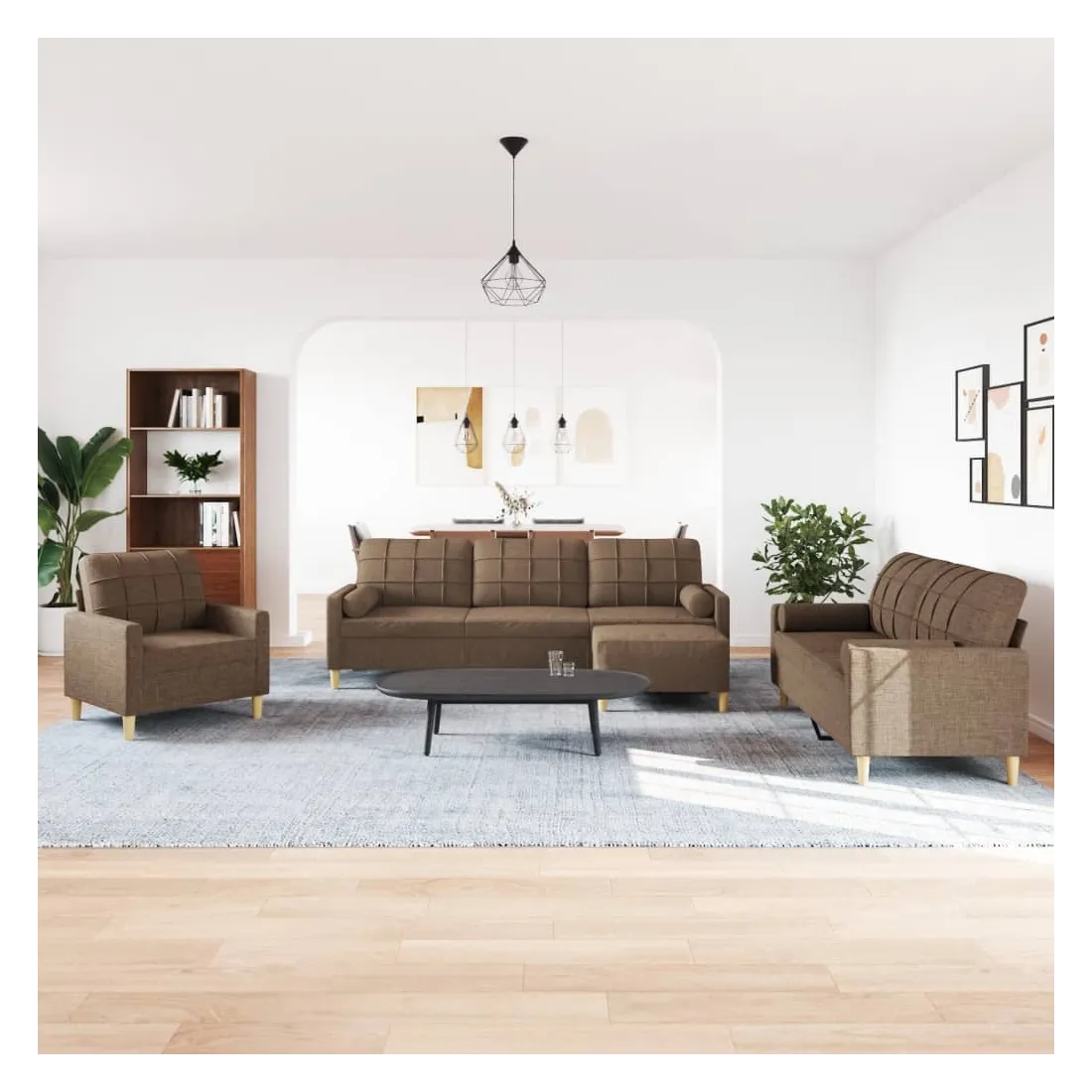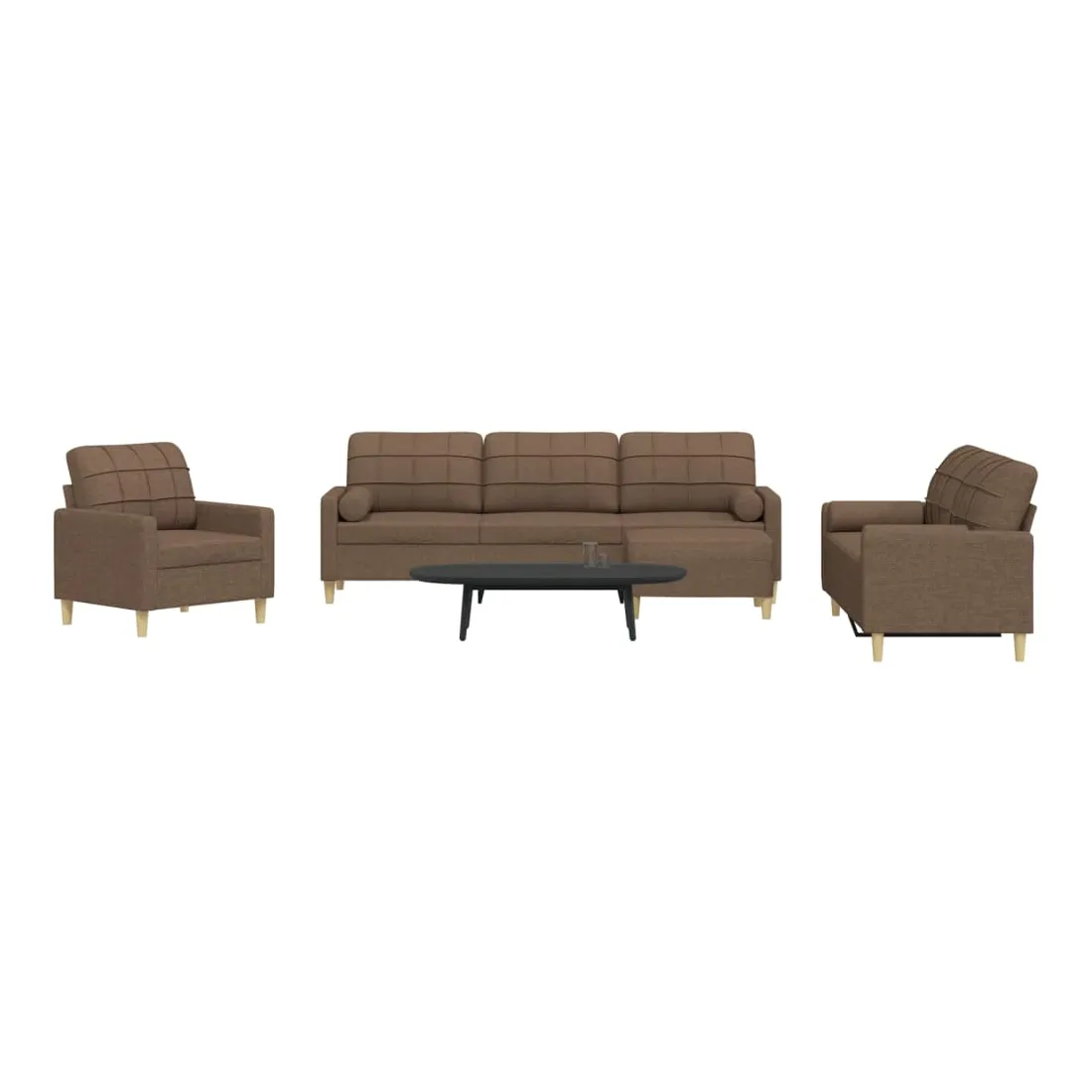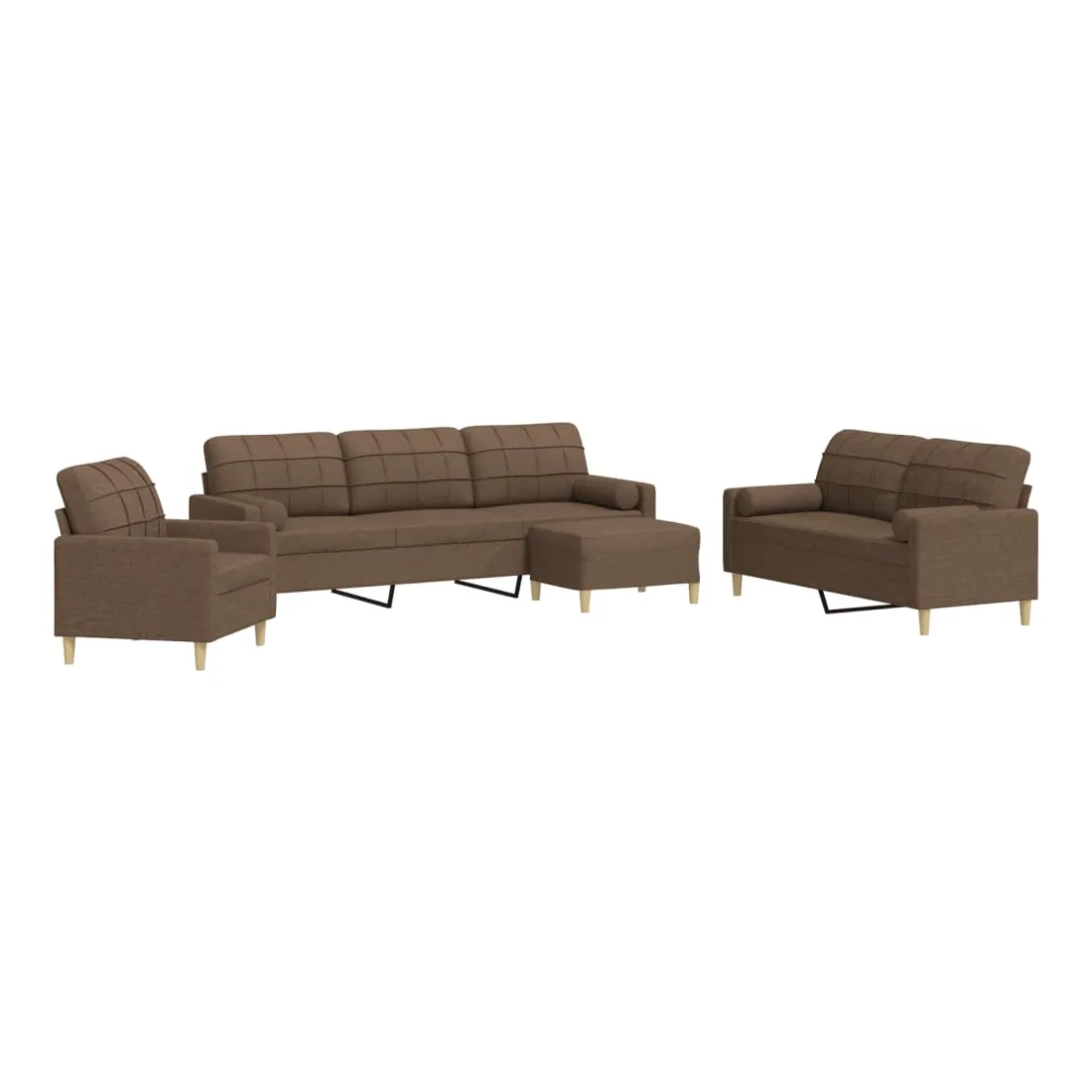 vidaXLCet ensemble de canapés est un excellent endroit pour discuter, lire, regarder la télévision ou simplement vous détendre. Il est destiné à être un point central de votre maison. Matériau doux et durable : le tissu en polyester offre une combinaison de douceur, de respirabilité et de durabilité, vous garantissant un confort et une convivialité ultimes. Cadre robuste et stable : le cadre en métal du canapé en tissu assure robustesse et stabilité. Expérience d'assise confortable : le canapé est très confortable avec les sièges, les accoudoirs et les oreillers de dossier bien rembourrés. Oreillers cylindriques pratiques : ces oreillers cylindriques non seulement embellissent votre décor, mais ils peuvent également apporter un confort supplémentaire lorsque vous êtes assis ou allongé. Pouf polyvalent : ce repose-pied convient pour reposer vos pieds lorsque vous êtes allongé dans un canapé, ou pour vous offrir un siège supplémentaire dans votre pièce. De plus, le design simple et la taille compacte le rendent idéal pour presque tous vos espaces de vie.