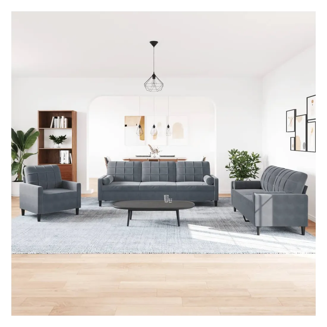 Cet ensemble de canapés est un excellent endroit pour discuter, lire, regarder la télévision ou simplement vous détendre. Il est destiné à être un point central de votre maison. Matériau doux et confortable : le tissu en velours présente une surface douce et lisse qui offre une sensation agréable contre la peau, vous apportant chaleur et confort ultime. Cadre robuste et stable : le cadre en métal du canapé de salon assure robustesse et stabilité. Expérience d'assise confortable : le canapé est très confortable avec les sièges, les accoudoirs et les oreillers de dossier bien rembourrés. Les traversins inclus ne font pas qu'embellir votre décor, ils peuvent aussi ajouter un confort supplémentaire lorsque vous êtes assis ou allongé. Design accrocheur : doté d'un design simple mais moderne, ce canapé est destiné à attirer l'attention dans votre chambre.