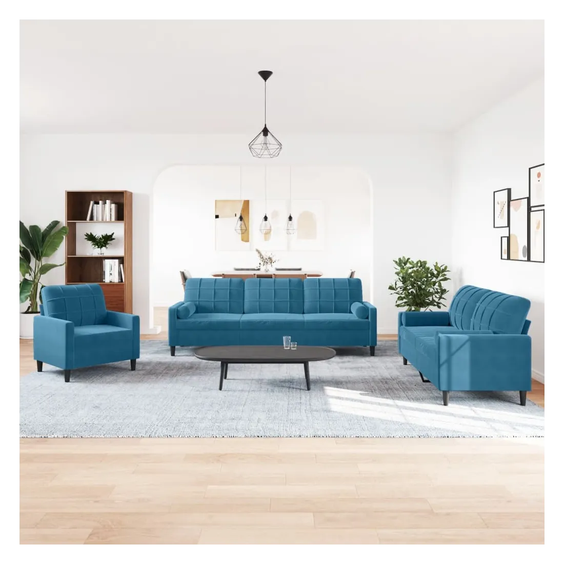 Cet ensemble de canapés est un excellent endroit pour discuter, lire, regarder la télévision ou simplement vous détendre. Il est destiné à être un point central de votre maison. Matériau doux et confortable : le tissu en velours présente une surface douce et lisse qui offre une sensation agréable contre la peau, vous apportant chaleur et confort ultime. Cadre robuste et stable : le cadre en métal du canapé de salon assure robustesse et stabilité. Expérience d'assise confortable : le canapé est très confortable avec les sièges, les accoudoirs et les oreillers de dossier bien rembourrés. Les traversins inclus ne font pas qu'embellir votre décor, ils peuvent aussi ajouter un confort supplémentaire lorsque vous êtes assis ou allongé. Design accrocheur : doté d'un design simple mais moderne, ce canapé est destiné à attirer l'attention dans votre chambre.