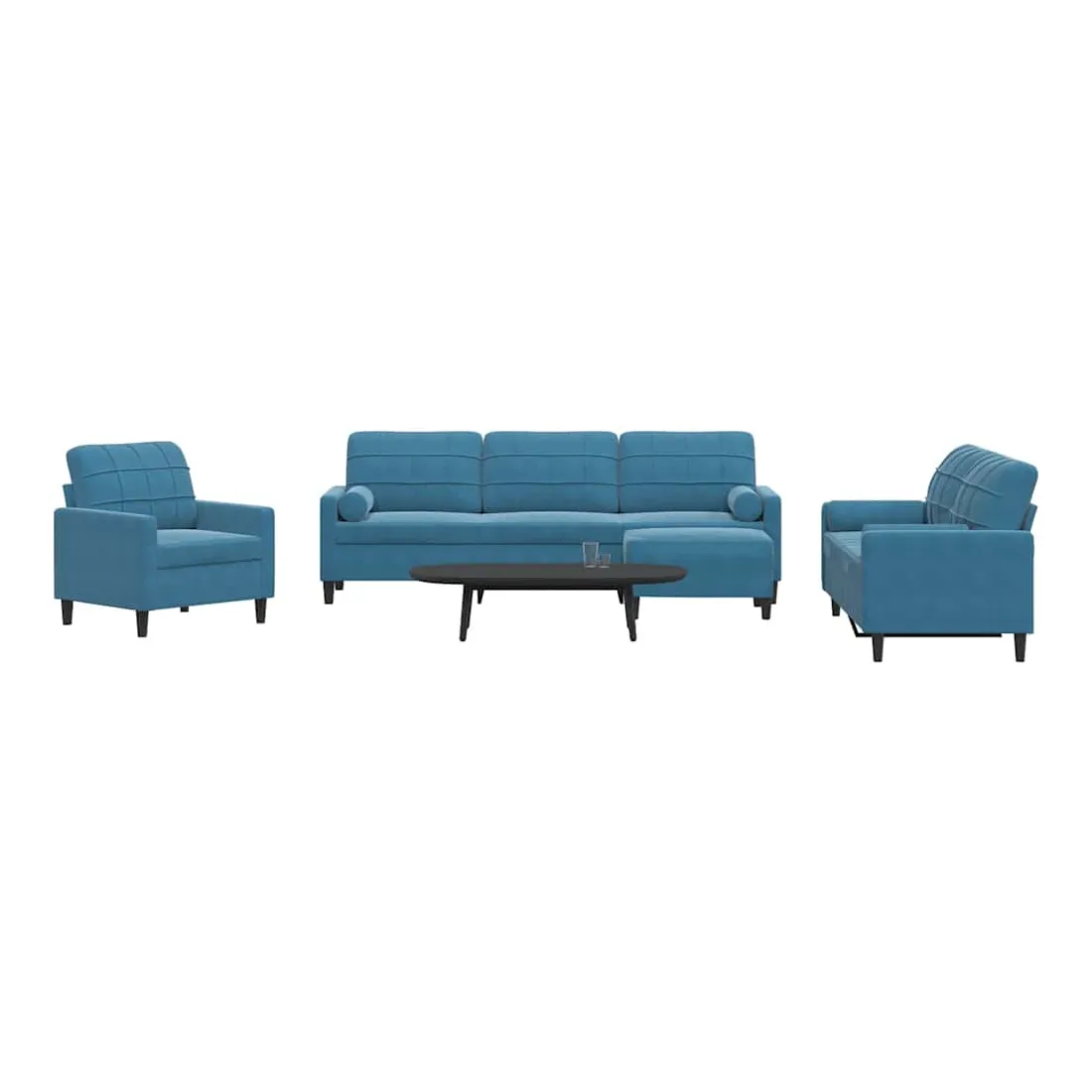 Cet ensemble de canapés est un excellent endroit pour discuter, lire, regarder la télévision ou simplement vous détendre. Il est destiné à être un point central de votre maison. Matériau doux et confortable : le tissu en velours présente une surface douce et lisse qui offre une sensation agréable contre la peau, vous apportant chaleur et confort ultime. Cadre robuste et stable : le cadre en métal du canapé de salon assure robustesse et stabilité. Expérience d'assise confortable : le canapé est très confortable avec les sièges, les accoudoirs et les oreillers de dossier bien rembourrés. Les traversins inclus ne font pas qu'embellir votre décor, ils peuvent aussi ajouter un confort supplémentaire lorsque vous êtes assis ou allongé. Pouf polyvalent : ce repose-pied convient pour reposer vos pieds lorsque vous êtes allongé dans un canapé, ou pour vous offrir un siège supplémentaire dans votre pièce. De plus, le design simple et la taille compacte le rendent idéal pour presque tous vos espaces de vie.Design accrocheur : doté d'un design simple mais moderne, ce canapé est destiné à attirer l'attention dans votre chambre.