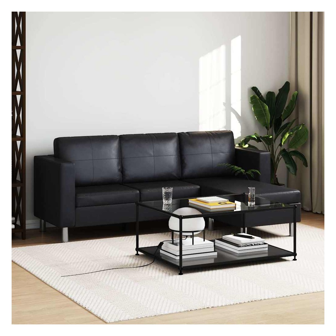 Canapé sectionnel à 3 places Cuir synthétique Noir
