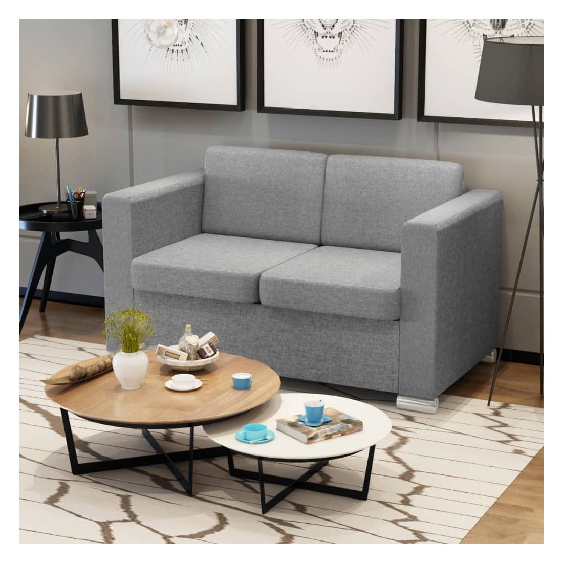 Canapé à 2 places Tissu Gris clair