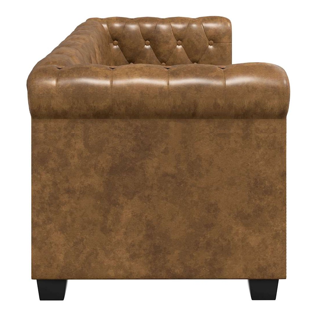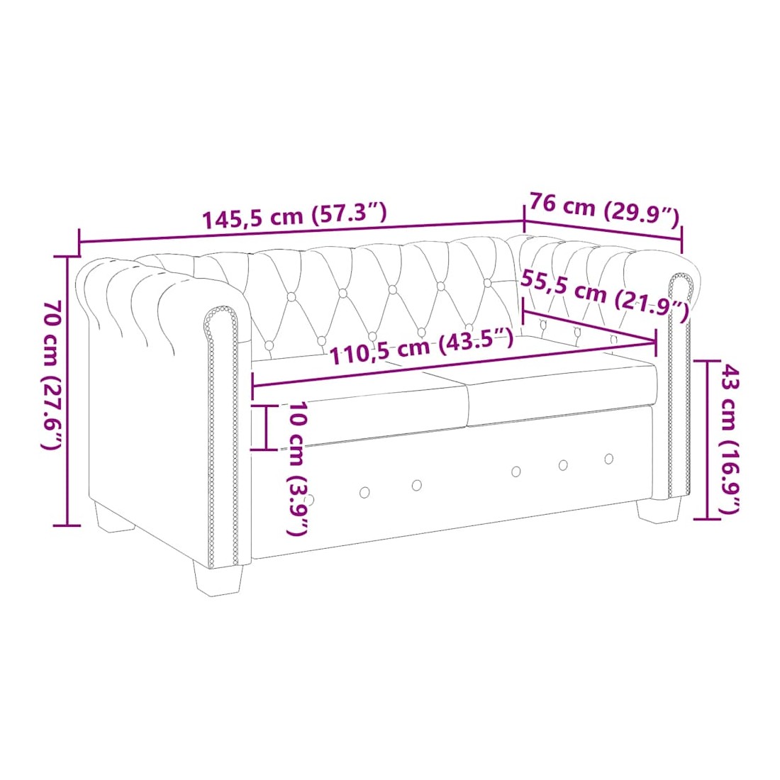 Ce canapé à 2 places Chesterfield est la combinaison parfaite de confort et d'élégance. Il occupe peu d'espace et est adéquat à tout décor de maison ou de bureau. Longue durée de vie et entretien facile : le similicuir est un matériau très durable qui résiste aux taches, ce qui le rend facile à nettoyer avec un chiffon humide. Sa surface lisse lui confère un aspect élégant qui ressemble à celui du cuir véritable.Cadre robuste et stable : le cadre en bois du canapé assure robustesse et stabilité.Expérience d'assise confortable : ce canapé 2 places, doté d'une assise rembourrée, offre une expérience d'assise confortable.