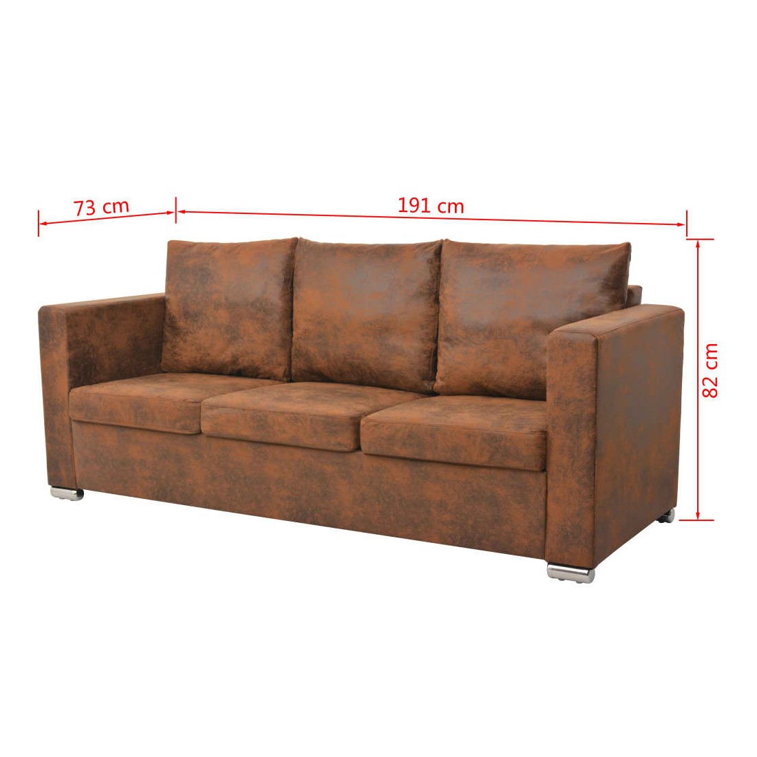 Ce canapé à 3 places sera un excellent ajout à votre maison. Grâce à son design moderne et élégant, le canapé s'adapte à tous les décors de salon. Le canapé est doté d'un rembourrage épais en daim artificiel et d'un cadre en bois de haute qualité. Les coussins de siège et de dossier rembourrés s'ajoutent à son confort d'assise. C'est le choix idéal pour bavarder, lire, regarder la télévision ou simplement vous détendre. L'assemblage est facile. Maximum 110 kg par siège. Soyez conscient du risque de feux ouverts et d'autres sources de forte chaleur à proximité du produit.