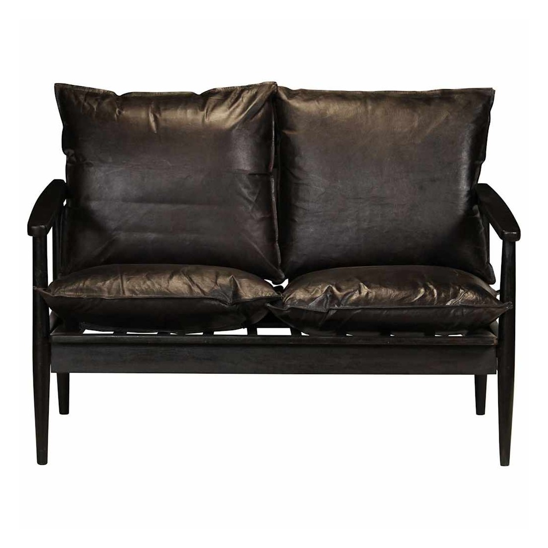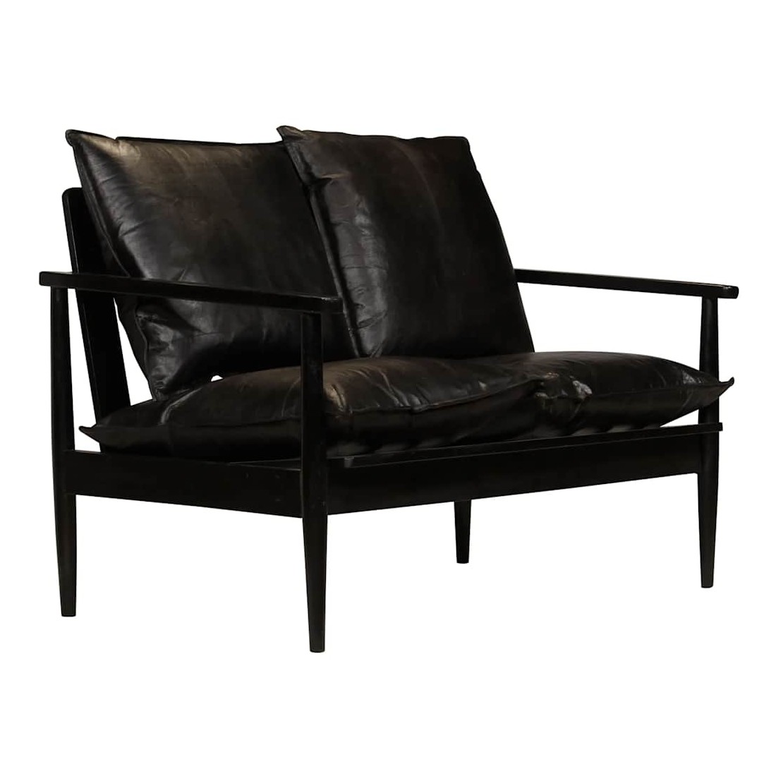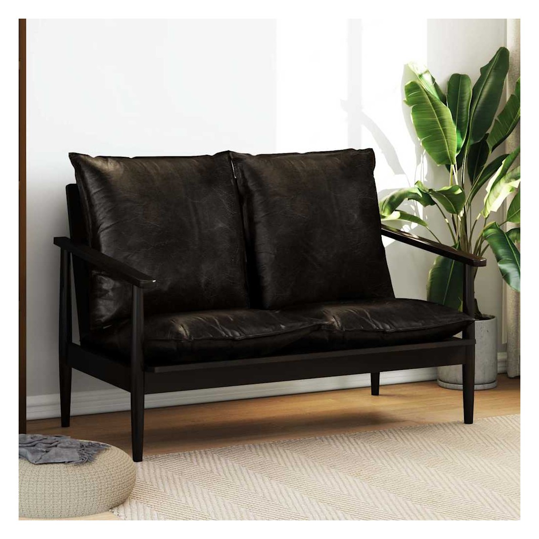 Canapé à 2 places Cuir véritable avec bois d'acacia Noir