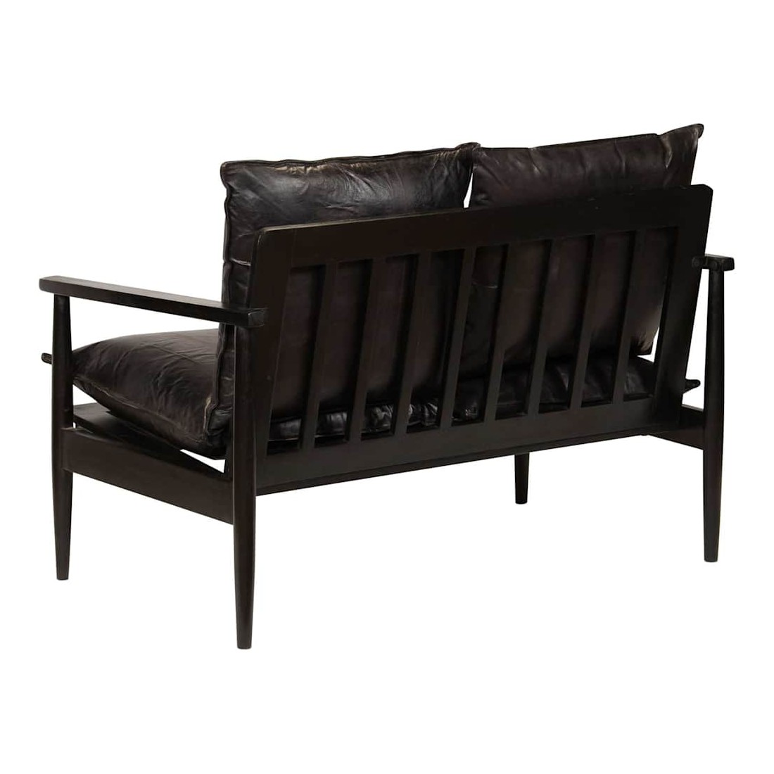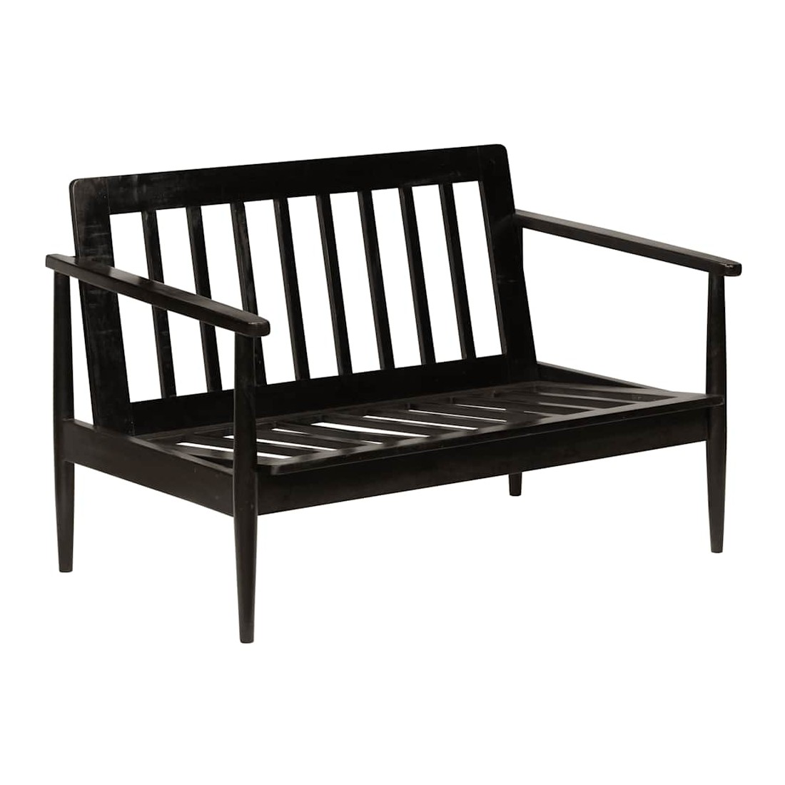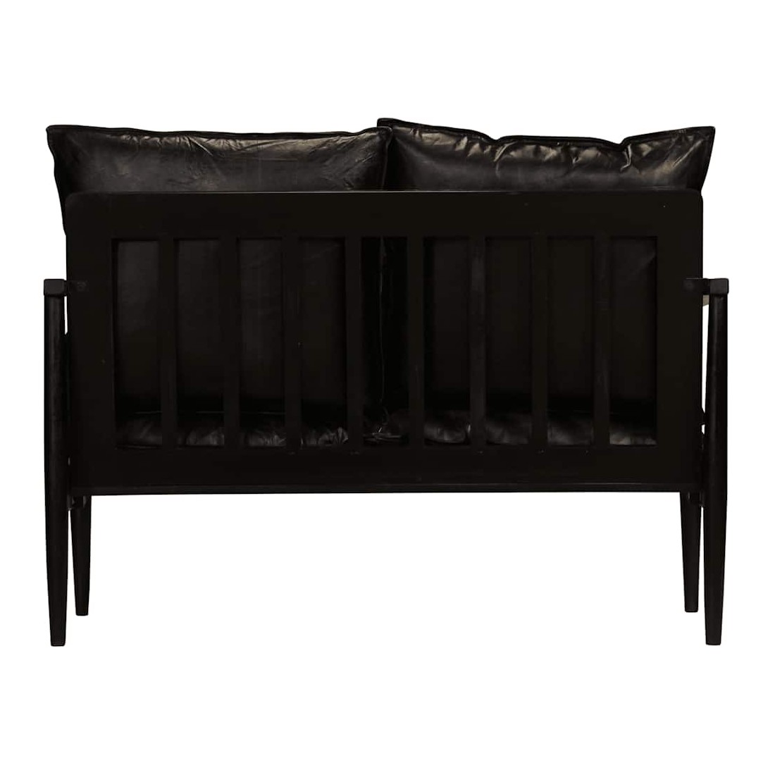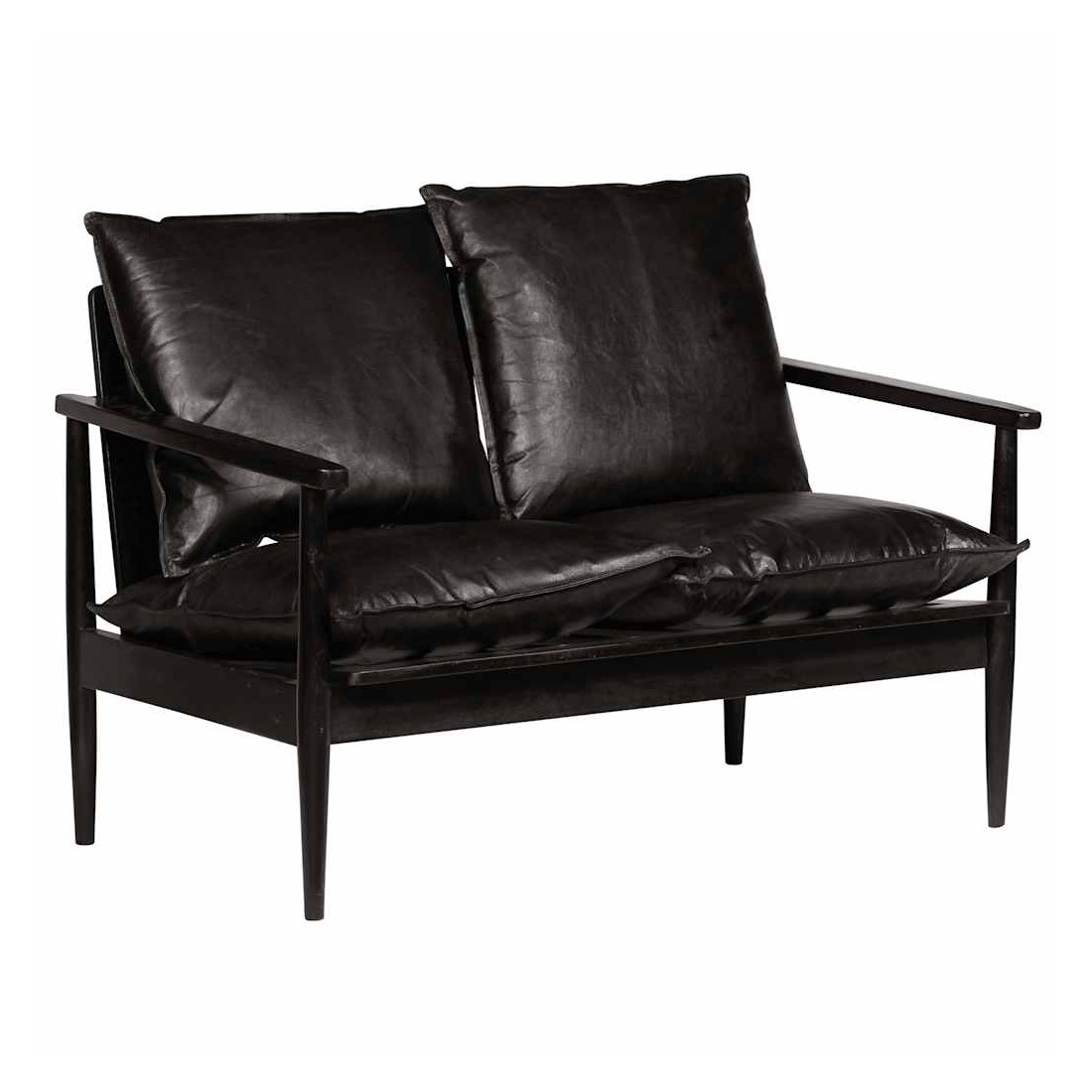 Canapé à 2 places Cuir véritable avec bois d'acacia Noir