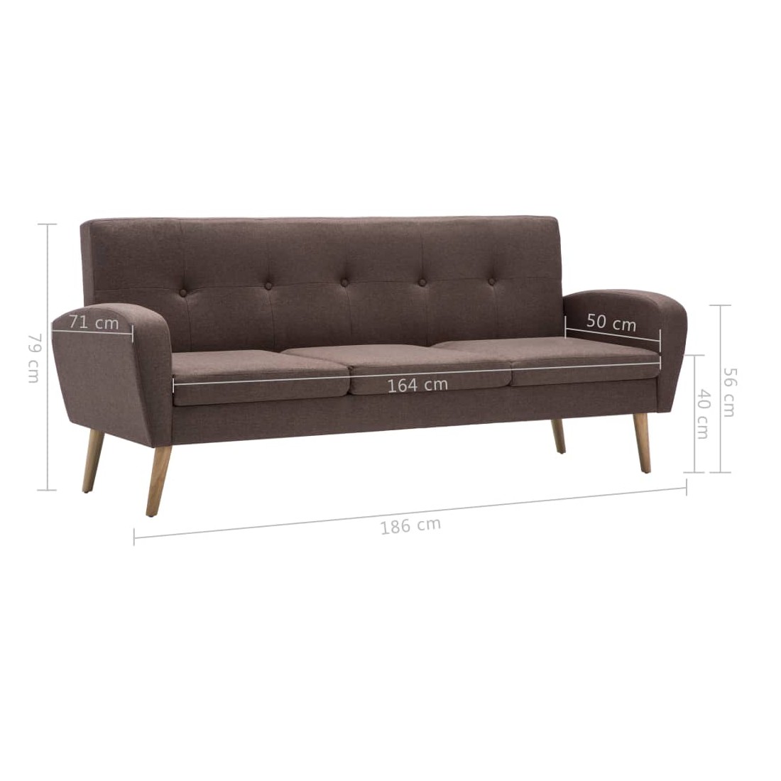 Notre canapé à 3 places, au design simple mais élégant, sera un complément idéal à votre intérieur. Le canapé est rembourré en tissu polyester doux et capitonné de mousse pour plus de confort. Son cadre en bois massif rend le canapé stable, robuste et durable. Le canapé sera un choix parfait pour bavarder, lire, regarder la télévision ou simplement vous détendre. L'assemblage est facile.