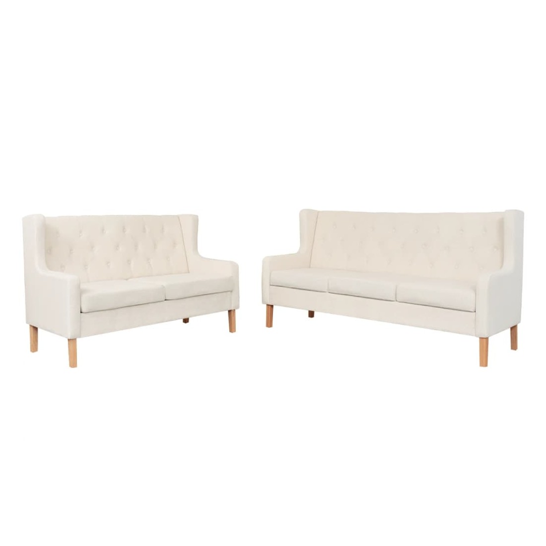 Cet ensemble de canapé très confortable, au design sobre, sera idéal pour bavarder, lire, regarder la télévision ou simplement vous détendre. L'ensemble de canapé est capitonné en tissu polyester doux et rembourré avec de la mousse pour plus de confort. Avec un cadre en bois massif, le canapé est stable et durable. L'assemblage est facile. La livraison comprend un canapé à 2 places et un canapé à 3 places.